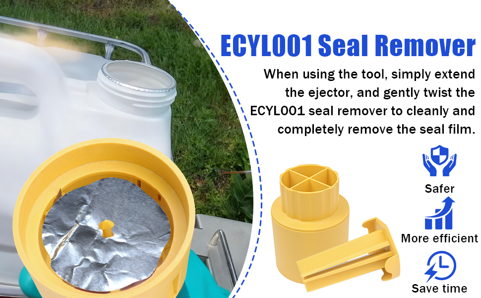 Outstanding Protective Properties: When using the tool, simply extend the ejector, and gently twist the ECYL001 seal remover to cleanly and completely remove the seal film. No more tearing, prying, poking, or peeling—eliminating the messy process that leaves the seal edge in tatters. To make agricultural labor less strenuous for workers, and this seal remover helps workers save time, boost efficiency in removing container seals, protect hands from injury, and turn this troublesome step into a hassle-free process, making work flow more smoothly.