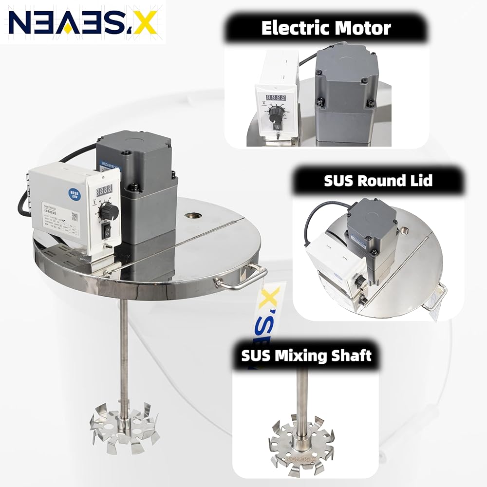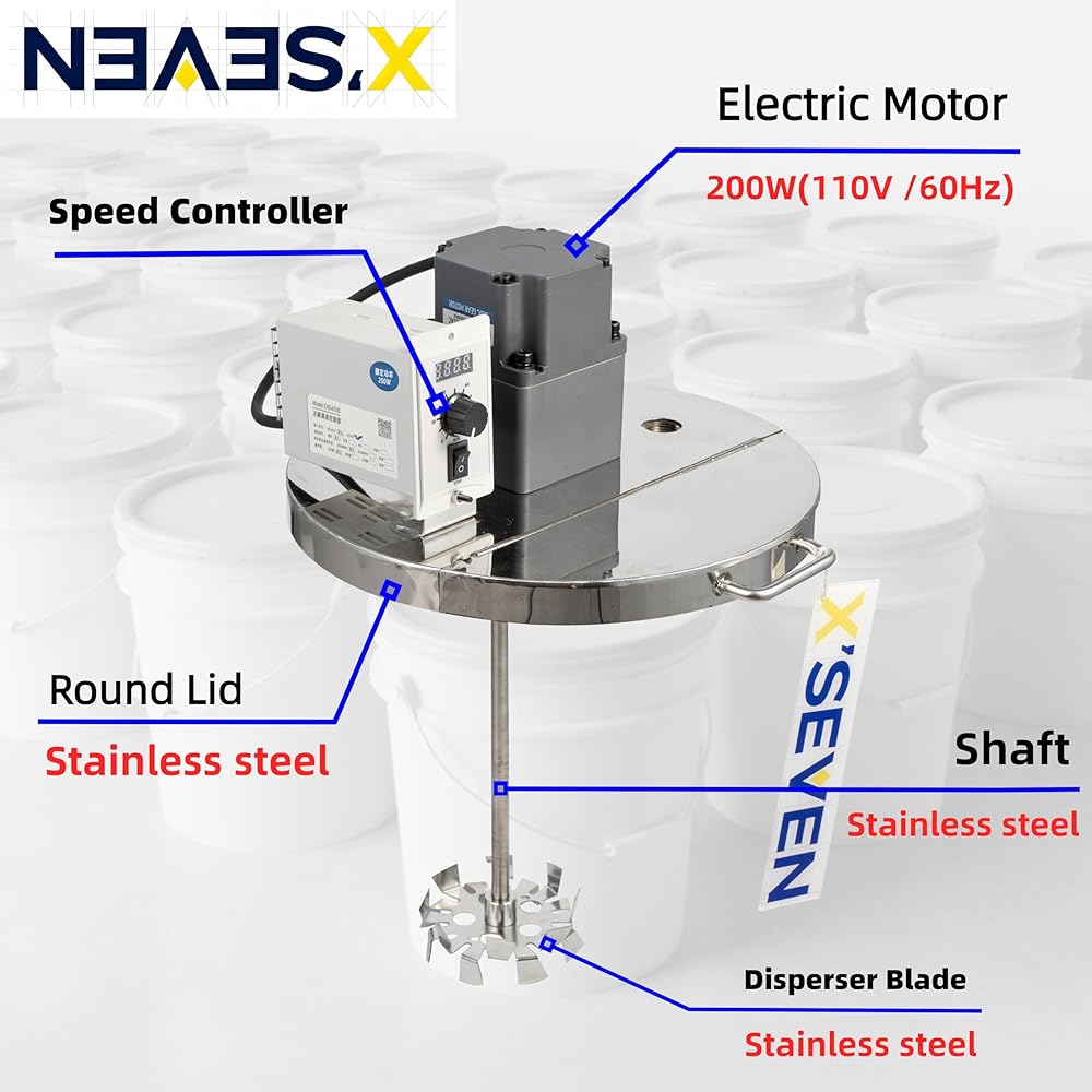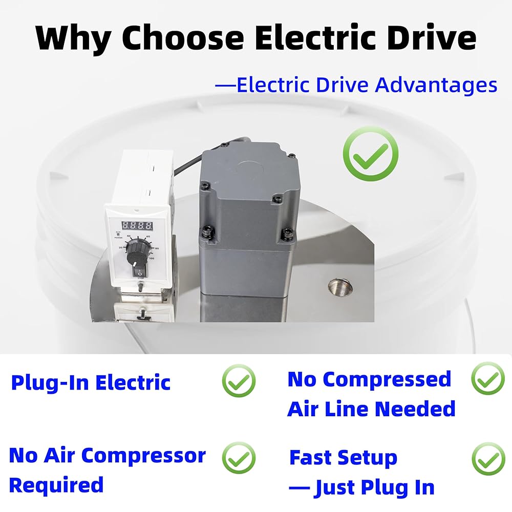 200W Electric Motor, 1000 RPM —200W motor delivers about 1000 RPM mixing speed and is designed for 110–120V 60 Hz US outlets, so you can plug into standard power with no air compressor required.