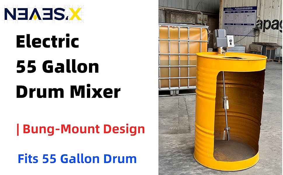 Electric 55 Gallon Bung Mount Drum Mixer, 400W 110V Drum Agitator for Closed-Head Steel Drums, 9.75 N·m High Torque Motor for Low to High Viscosity Liquids