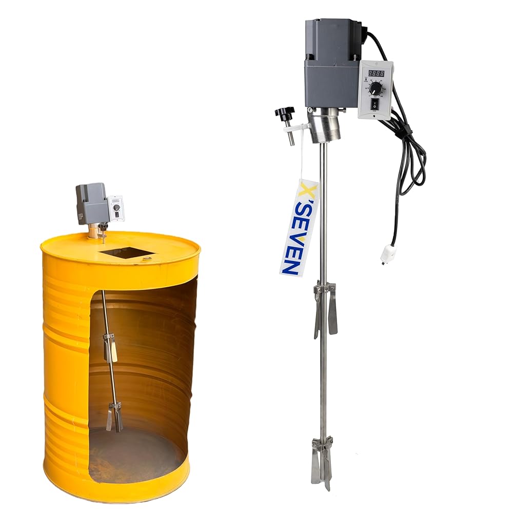 Stainless Steel with Adjustable Speed – Mixer uses a stainless steel shaft and impeller, and the motor offers adjustable speed so you can set the mixing speed to match different liquids and applications.
