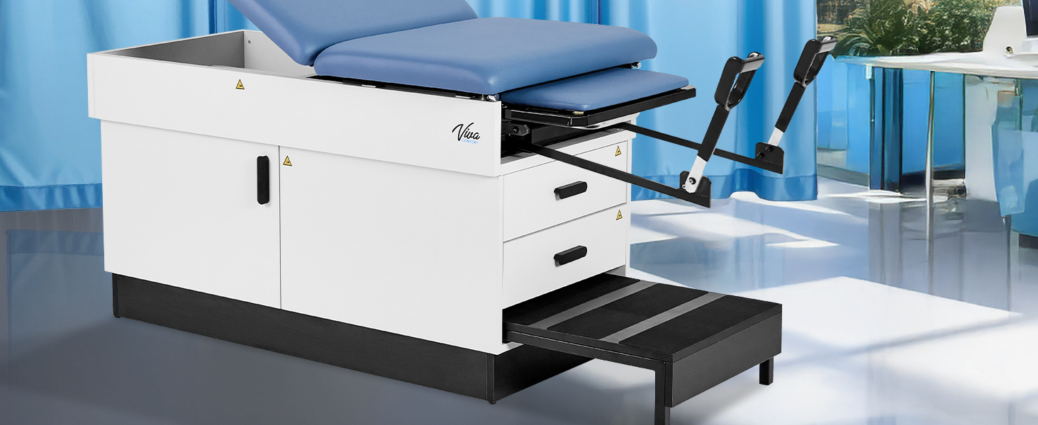 VivaComfort Slim Line Medical Exam Table with Stirrups, Blue