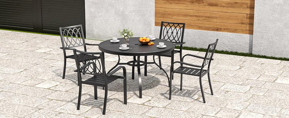 CENTER UMBRELLA HOLE – Maximize your comfort on sunny days with the built-in patio table with umbrella hole. This standard-size opening fits most market umbrellas, allowing you to add instant shade exactly where you need it. Whether you are using it as a round outdoor table by the pool or a shaded patio dining table for brunch, this feature lets you stay cool and protected from UV rays while enjoying the outdoors.