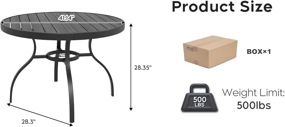 ALL-WEATHER RUST RESISTANCE & EASY CLEAN – Built to withstand the elements, this outdoor round table features a multi-step anti-rust and anti-corrosion treatment on the iron frame, ensuring it stands up to rain, humidity, and UV exposure season after season. The slatted top allows rainwater to drain through effortlessly—simply wipe clean with a damp cloth. Spend more time relaxing on your patio tables and less time maintaining them.