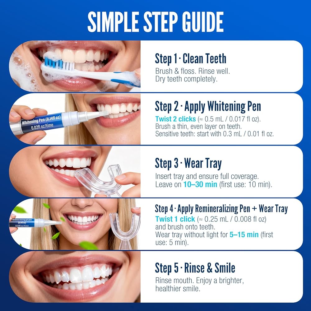 Designed for Sensitive Teeth:The whitening + remineralizing system helps reduce irritation and sensitivity during whitening. Perfect for people searching for teeth whitening for sensitive teeth without discomfort.