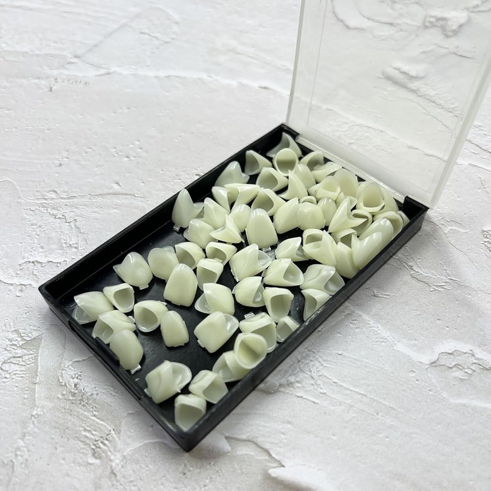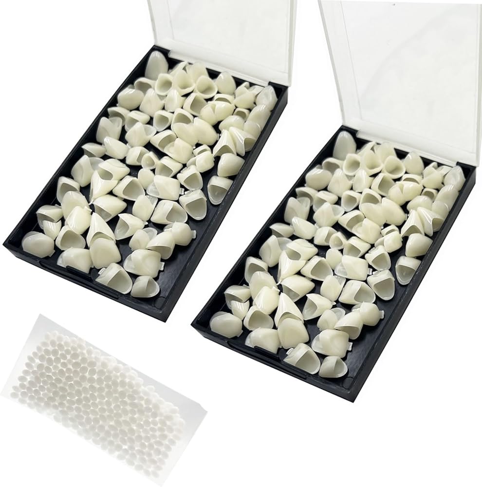 2 Box/140 pcs False Teeth Crown Repair Kit Dental Anterior Veneers Fake Tooth Cap Crown with Thermal Beads for Fixing or DIY