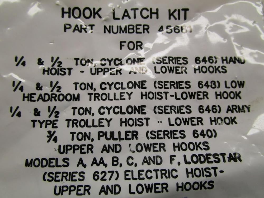 Latch Assembly, Product Type Latch Assembly, Compatible Hoist Type Electric Chain Hoists, Compatible Load Capacity 500 lb, 1,000 lb, Compatible Series Lodestar, Material Steel, Overall Length 1.8 in, Overall Width 2 in, Overall Height 0.5 in