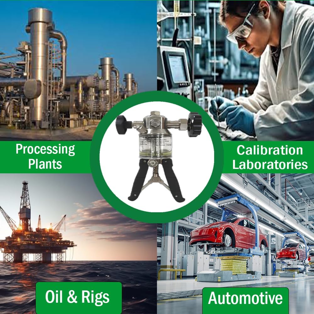 Wide Pressure Range for Accurate Calibration: Generates precise hydraulic pressure from 0 to 600 kg/cm², suitable for calibrating pressure gauges, transmitters, and sensors in laboratories and field environments.