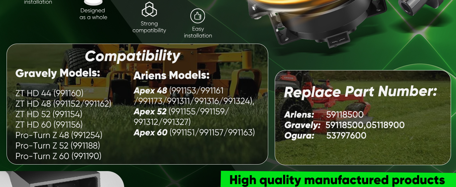 Compatible Equipment: This upgraded Bearings PTO Clutch direct replace for Gravely ZT HD 44, ZT HD 48, ZT HD 52, ZT HD 60, Pro-Turn Z48, Pro-Turn Z52, Pro-Turn Z60; for Ariens Apex 48, Apex 52, Apex 60