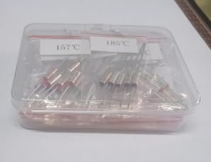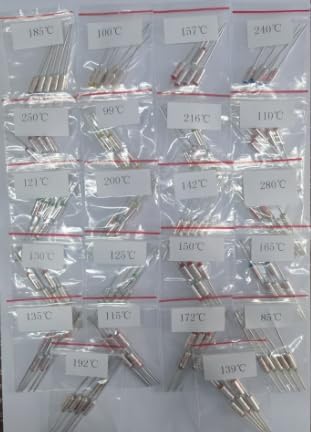 Yiwenchure 110pcs High Quality Temperature Thermal Cutoffs Fuse Assortment Kit. Specifications: ● Rated Voltage : 250V; ● Rated Current : 10A; ● The Kit Rated Functioning Temperature Include: 85℃,99℃,100℃,110℃, 115℃, 121℃, 125℃, 130℃, 135℃, 139℃, 142℃, 150℃,157℃, 165℃, 172℃, 185℃, 192℃, 200℃, 216℃, 240℃,250℃, 280℃; ● Fuse Size : 4 x 13 mm / 0.16" x 0.51" (D*L); ● Total Length : 6.6cm / 2.6"; ● Main Material : Aluminum Fuse, Metal Leads; Features: ● The use of thermal particulate materials as a thermal insulation of the metal thermal fuse. ● Function is due to accidental failure, when the temperature exceeds the specified TF value, cut off the electrical circuit. ● Applications: iron, hair dryer, heater, refrigerator, rice cooker, kettle, coffee machine, air conditioning, ventilation fan, electric fan, gas boiler, transformer, power supply, adapter, charger, battery pack, copier, laser beam printer, power switch Package Include: 110pcs ● The Package Contains 22 Rated Temperature Values, Each 5pcs. ● Packed in A Rugged Convenient Re-sealable Plastic Storage Case. Package Quantity: ● 85℃ - 5pcs ● 99℃ - 5pcs ● 100℃ - 5pcs ● 110℃ - 5pcs ● 115℃ - 5pcs ● 121℃ - 5pcs ● 125℃ - 5pcs ● 130℃ - 5pcs ● 135℃ - 5pcs ● 139℃ - 5pcs ● 142℃ - 5pcs ● 150℃ - 5pcs ● 157℃ - 5pcs ● 165℃ - 5pcs ● 172℃ - 5pcs ● 185℃ - 5pcs ● 192℃ - 5pcs ● 200℃ - 5pcs ● 216℃ - 5pcs ● 240℃ - 5pcs ● 250℃ - 5pcs ● 280℃ - 5pcs