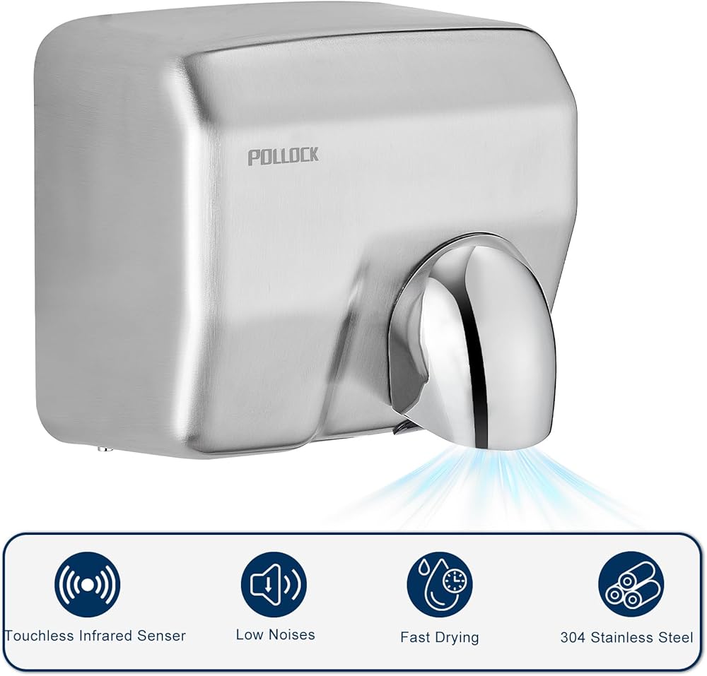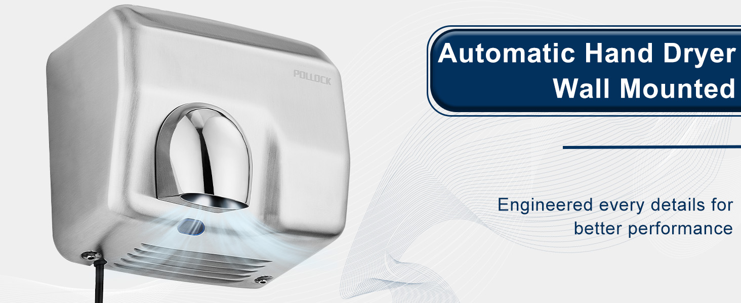 Fully Automatic Infrared Sensing: The stainless steel hand dryer features an automatic infrared sensing system that is both fast and sensitive. It activates when hands are within 8-13 cm and stops when hands are removed, ensuring continuous and efficient airflow.