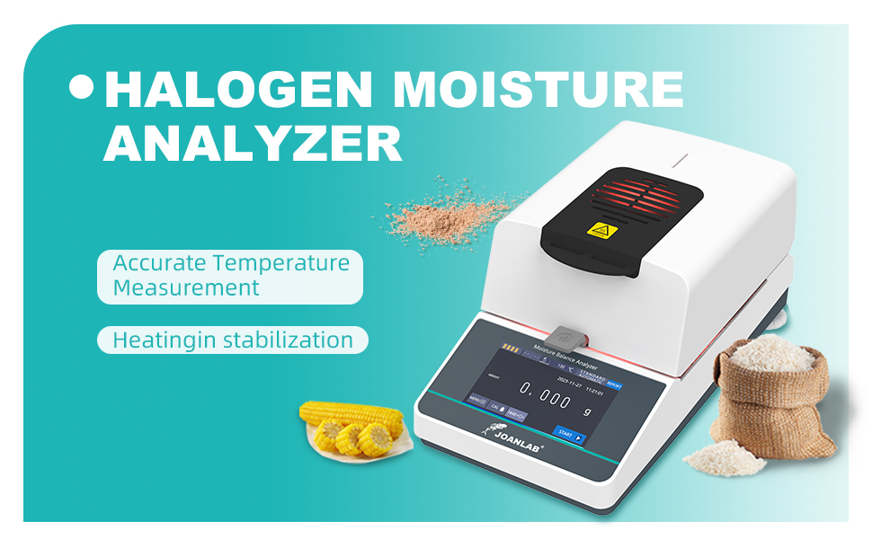 Versatile Applications:With a generous capacity of 110 grams, JOANLAB moisture analyzer is perfect for a wide range of industries, including food, agriculture, chemicals, and pharmaceuticals. It is particularly suitable for applications requiring rapid moisture determination in granular, powdered, sheet-like materials, and non-volatile liquids