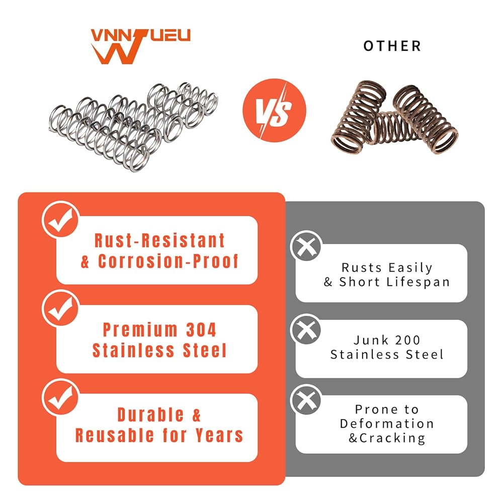 Our compression springs by size are made from tough, corrosion-resistant stainless steel. They deliver consistent compression and rebound, perfect for demanding DIY tasks and precise replacements.