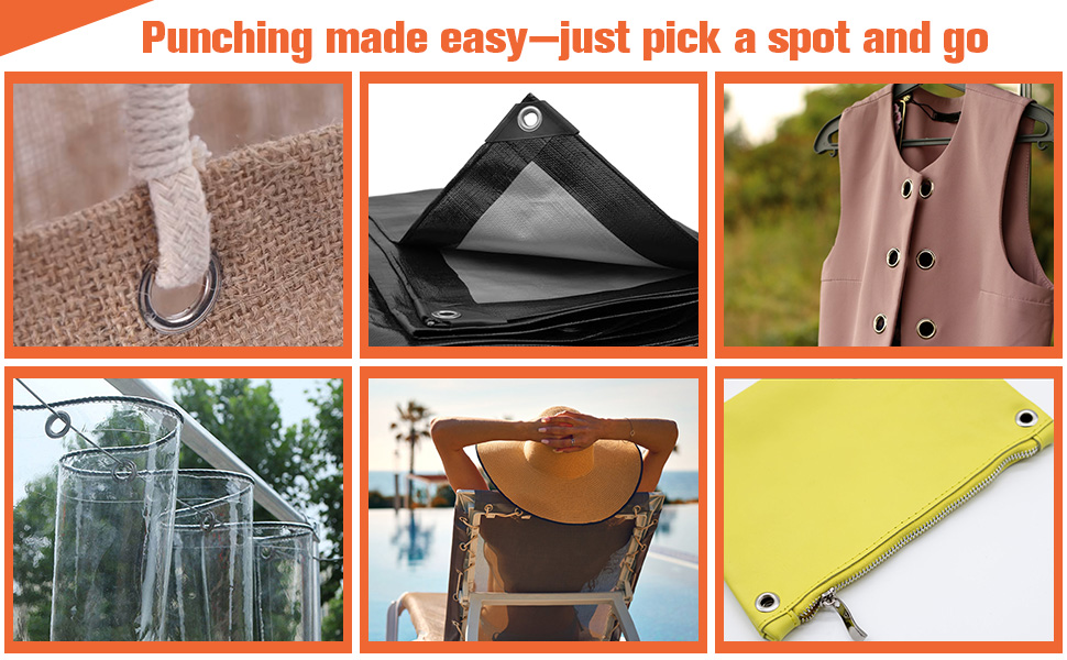 COMFORTABLE USE EXPERIENCE: Grommet tool kit design for fabric Silicone non - slip handle does not hurt or tire your hands. Holding the handle tightly makes the work more comfortable and convenient. It is also designed with an elastic device that automatically returns when pressed, completing the work quickly and easily