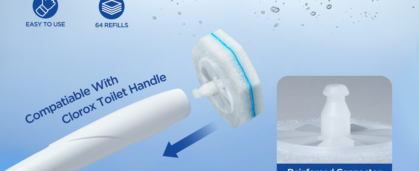 SAME COST, GET MORE! 64-Count Mega Pack! Why settle for less? Get the most economical disposable toilet bowl cleaner wand on the market today! With 55% more refills than other toilet scrubber refills, you'll clean longer and shop less. SAVE YOUR MONEY! Perfectly compatible with Clorox toilet wands, these toilet bowl cleaners are your reliable partner for effortless, worry-free bathroom cleaning. Big value, real clean—just what your bathroom's been waiting for.