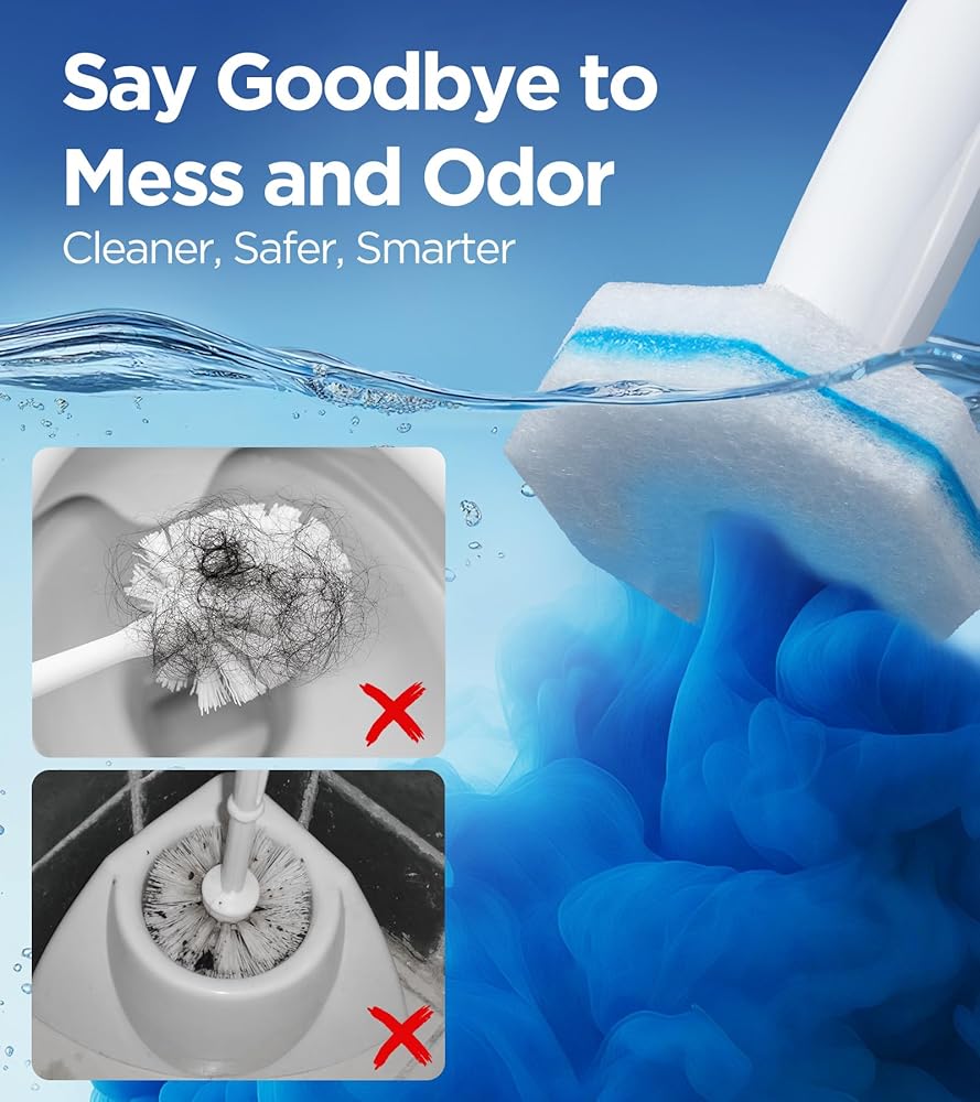 ONE-CLICK, TOTAL CLEAN! The toilet cleaner refill pad features a no-touch design, just press the button to easily replace and discard the used pad. Say goodbye to filthy toilet brushes, lingering odors, and stain buildup with traditional designs. Smelly toilet? Not anymore! Each toilet scrubber brush is infused with a refreshing scent that eliminates bad odors for good. Turn every clean into a burst of freshness that lasts.