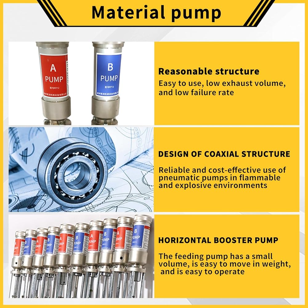 【High-efficiency fluid transport】This pneumatic piston pump features a 2:1 pressure ratio and a material flow rate of up to 18 liters/minute, enabling efficient transport of high-viscosity fluids such as polyurethane and polyurea.
