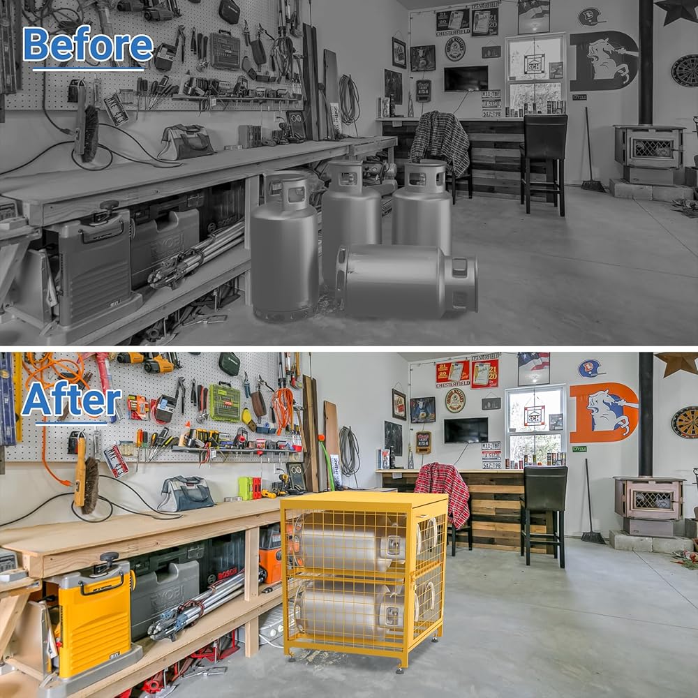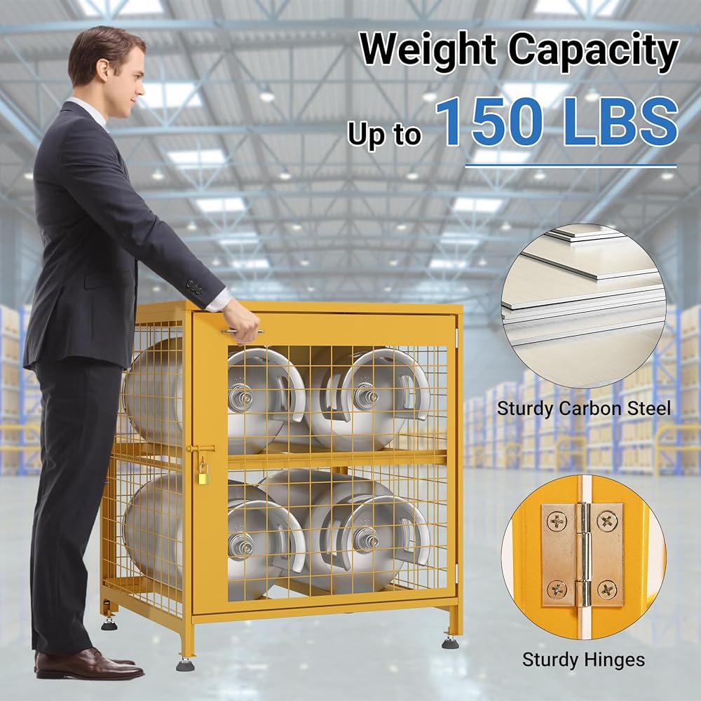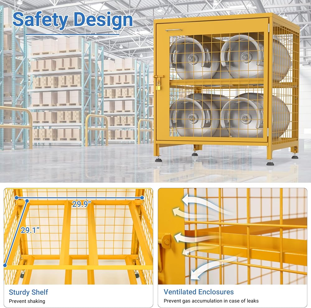 Enhanced Safety & Security: Ventilated design reduces gas buildup from leaks, making it safe for garages, workshops, or outdoor spaces. Includes a strong lock and 2 keys to prevent unauthorized access.
