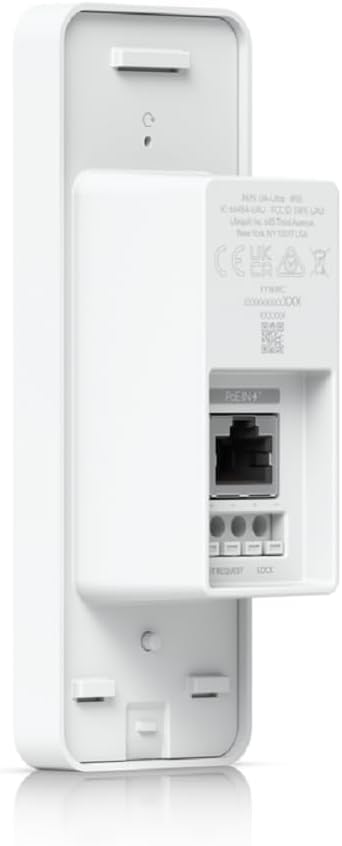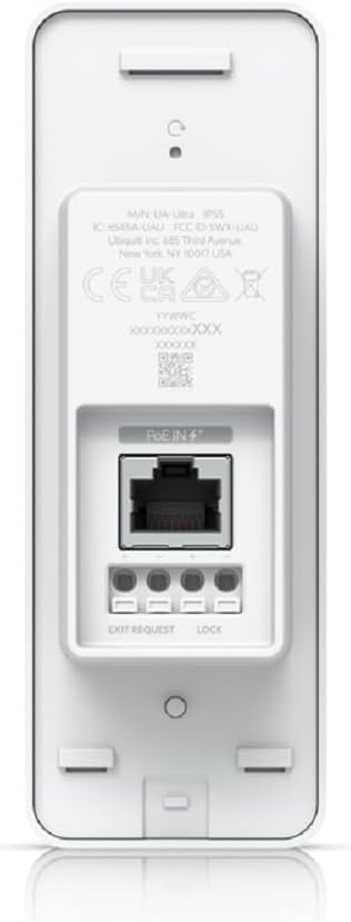 Tamper-resistant access reader with a built-in hub for complete, single-door entry control from one device.,,More from the Manufacturer,(1) Lock terminal (12V/1A),(1) Exit request input,Unlock using an NFC card or UniFi Identity mobile app,Connect and power using PoE+,IP55 weather resistance (-30 to 40° C)