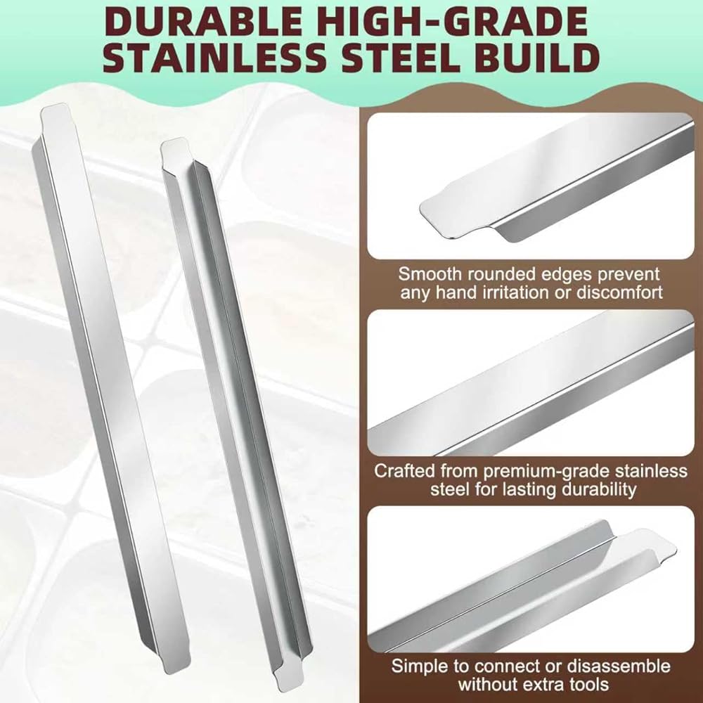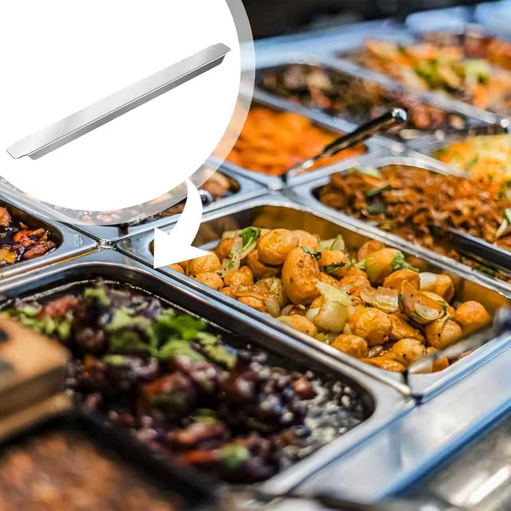 【Product Size】With a 12-inch size, our stainless steel adaptor bars deliver hassle-free operation and a snug, seamless fit. They effortlessly split or link your 1/2-size stainless steel and portion steam table pans, upgrading your kitchen's functional performance.