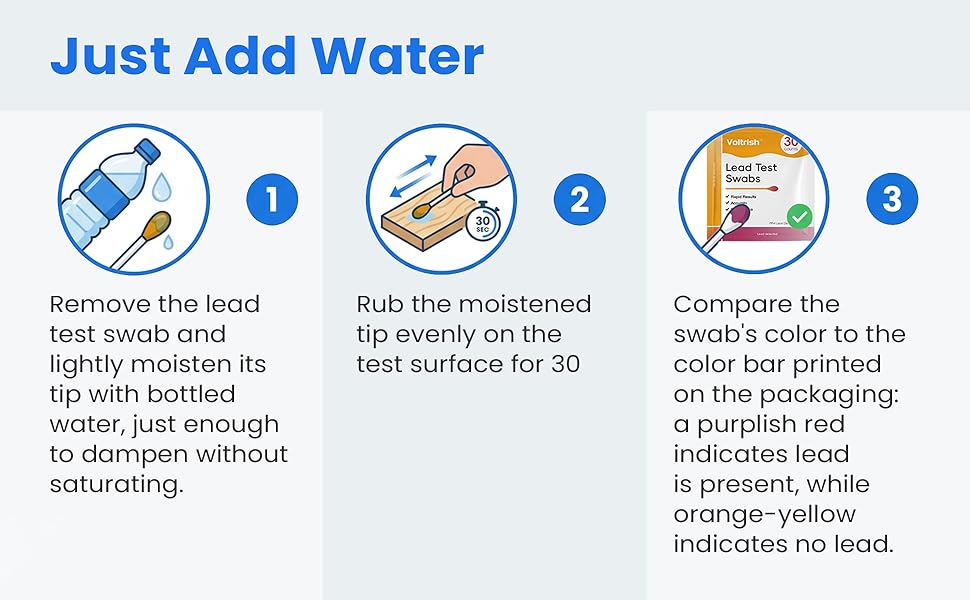 Instant 30-Second Screening: Water-activated swab helps you check a suspicious spot quickly; readable color result in about 30 seconds