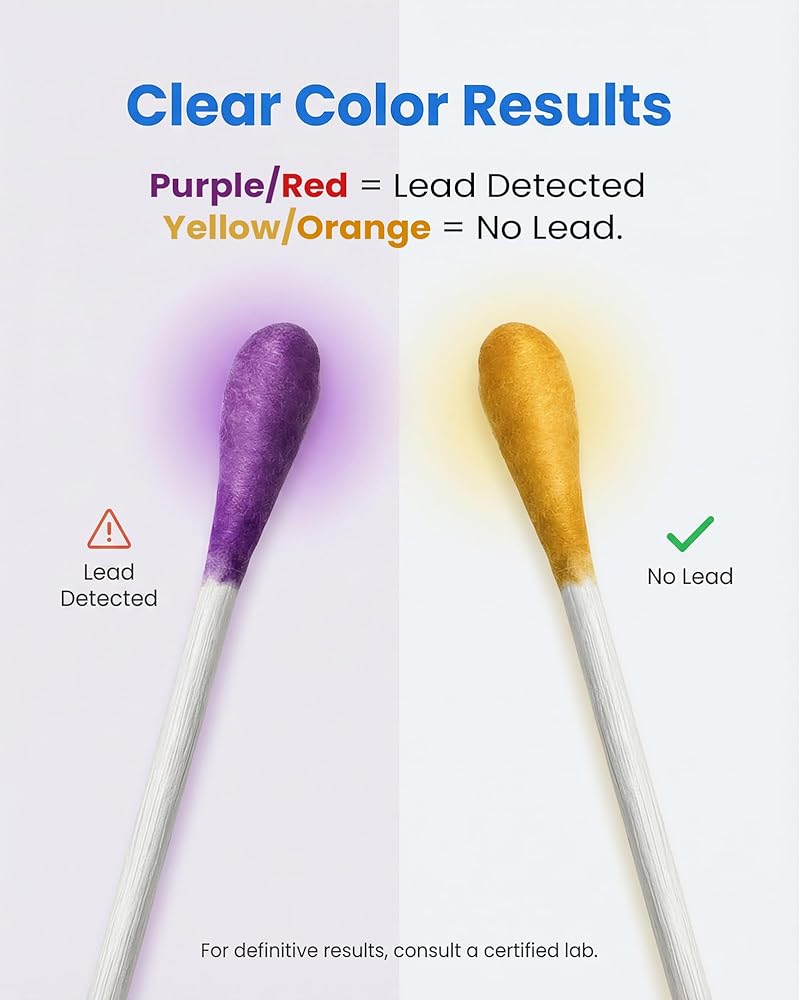 Clear Color Results: Match swab color to the printed color bar on the front of the packaging; purple or red means lead detected; yellow or orange means no lead detected