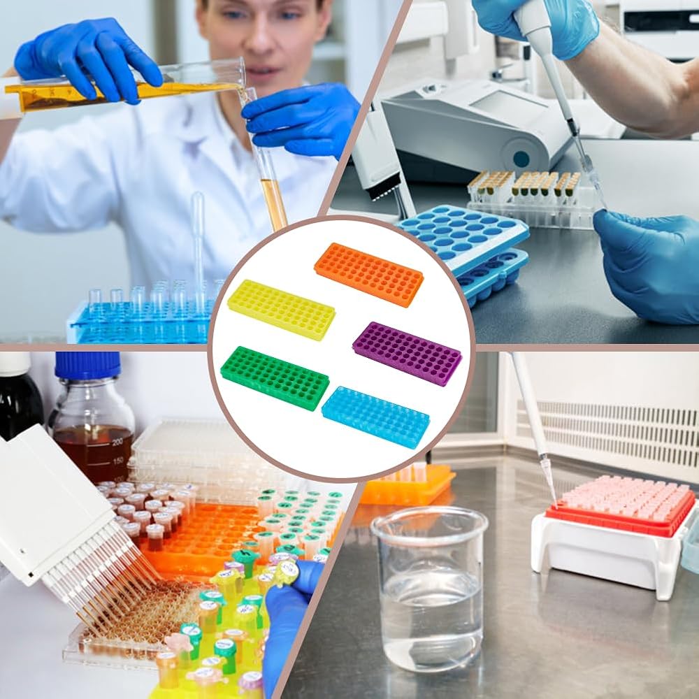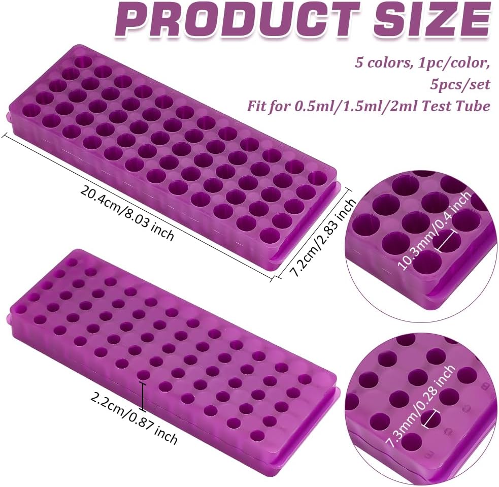 【Package Include】-- 5pcs test tube display stands of five different colors (Due to different production batches, there may be color differences in the products. Please refer to the actual received color as the standard) for PCR and microcentrifuge, suitable for 0.5ml, 1.5ml & 2ml test tube.