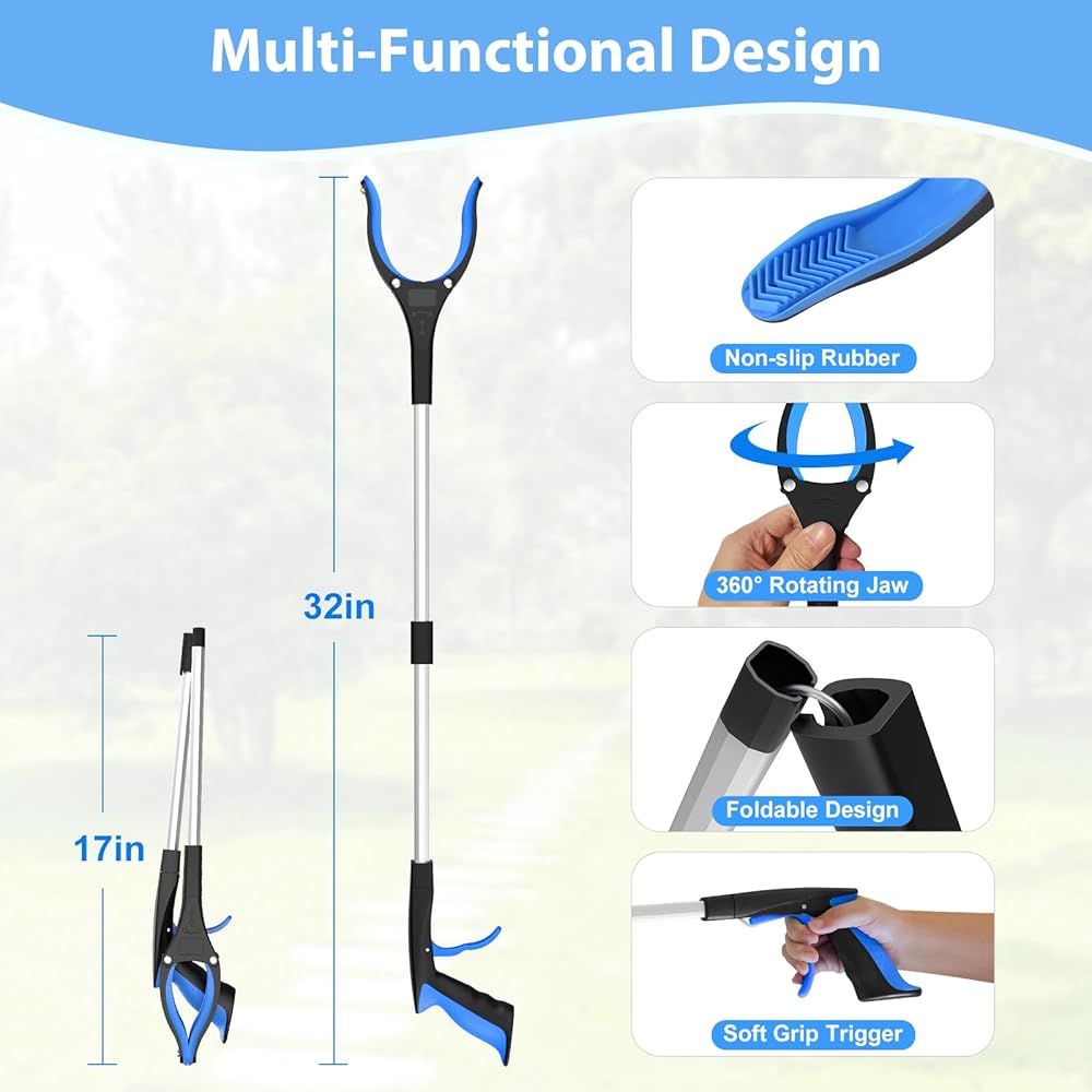 8 Pack 32 Inch Grabber Reacher Tool, Heavy Duty Lightweight Trash Picker Upper Grabber for Elderly Assist, Easy-Grip Non-Slip Handle, Multi-Use Home Outdoor Community Cleanup Mobility Aid Tool