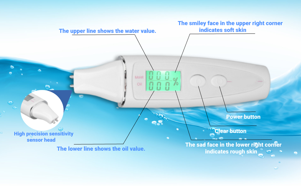 [Powerful Function]: This Mini Meter adopts high sensitivity probe and smart chips that can provide high result, it can analyse the water and oil level and calculate the skin condition, 3 kinds of state will be displayed to indicate you to do certain skin care work, this simple but powerful skin analyzer pen will keep you skin always in great condition