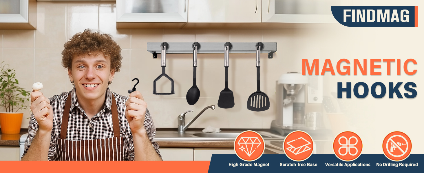 Versatile Use: These magnetic hooks are fairly small and don't take up too much space. Perfect use for hang little gadgets, such as hang keys, hats, towels, cups, apron, purse, industrial tools, kitchen utensils, shed tools, filing cabinets, child safety, mechanics, wiring, washing lines, removing nails/screws, steel doors.