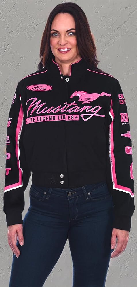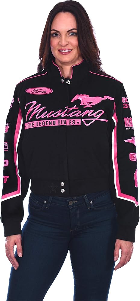 Loosen up the ties with discomfort by putting on this Ford Mustang Cotton Twill Jacket by J.H Design. Keeping your styling theories in mind, this snap-up jacket with Mustang embroidered pattern is designed to deliver the best combination of style and comfort. Snap-Up front with a racing style collar, stretch knit cuffs and waistband and 2 front hand pockets adds functionality to the jacket. The comfortable satin lining in the body and sleeves feels soft against the skin and allow you to move in comfort. The high-quality brushed cotton twill fabric makes it highly preferable among Mustang fans!