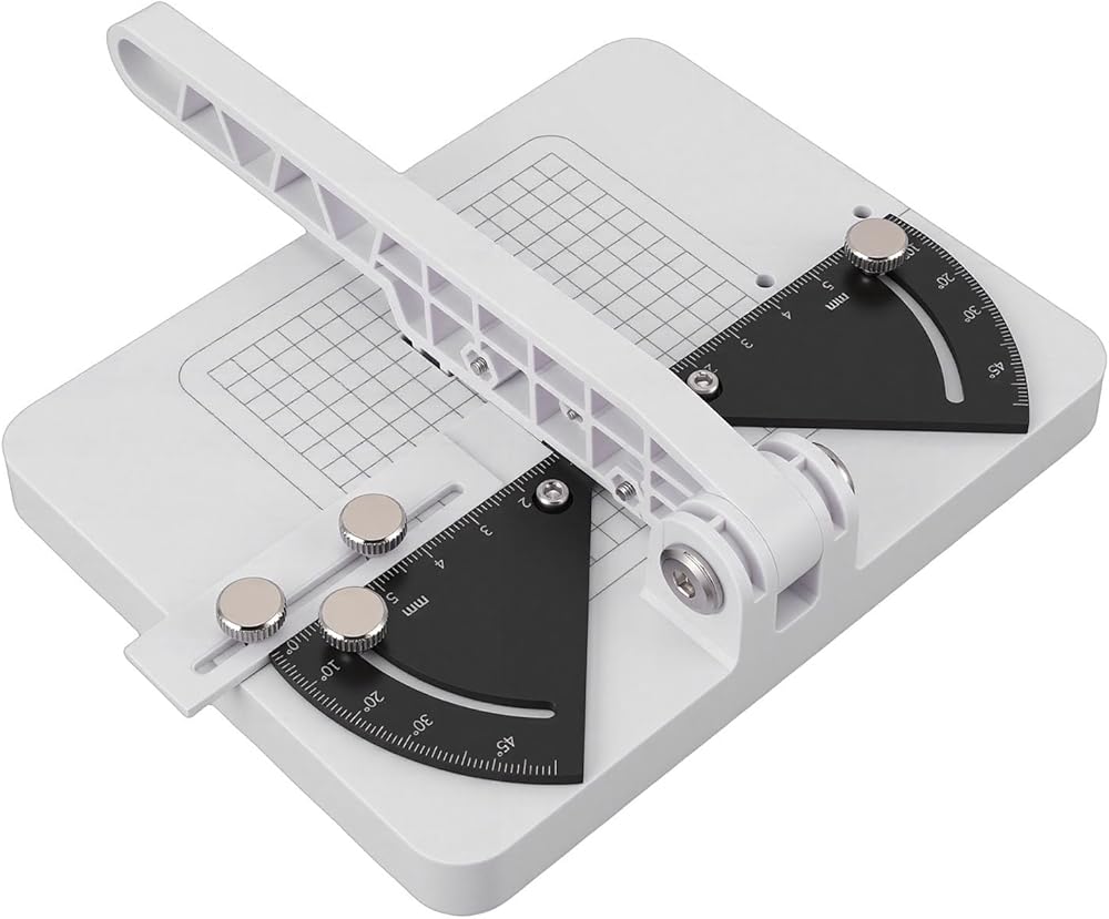1. Adjustable Angle Flexibility: The angle cutting station features adjustable angles with a range from 0° to 45°, equipped with a protractor and metal knob for secure locking.