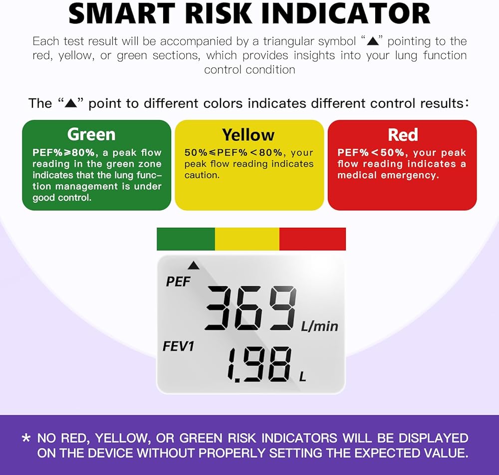 PEF FEV1 automatically display-Measuring forced expiratory volume of 1 second (FEV1), peak flow rate(PEF). Please blow with proper method, and take a break between each test. Any problem please contact us