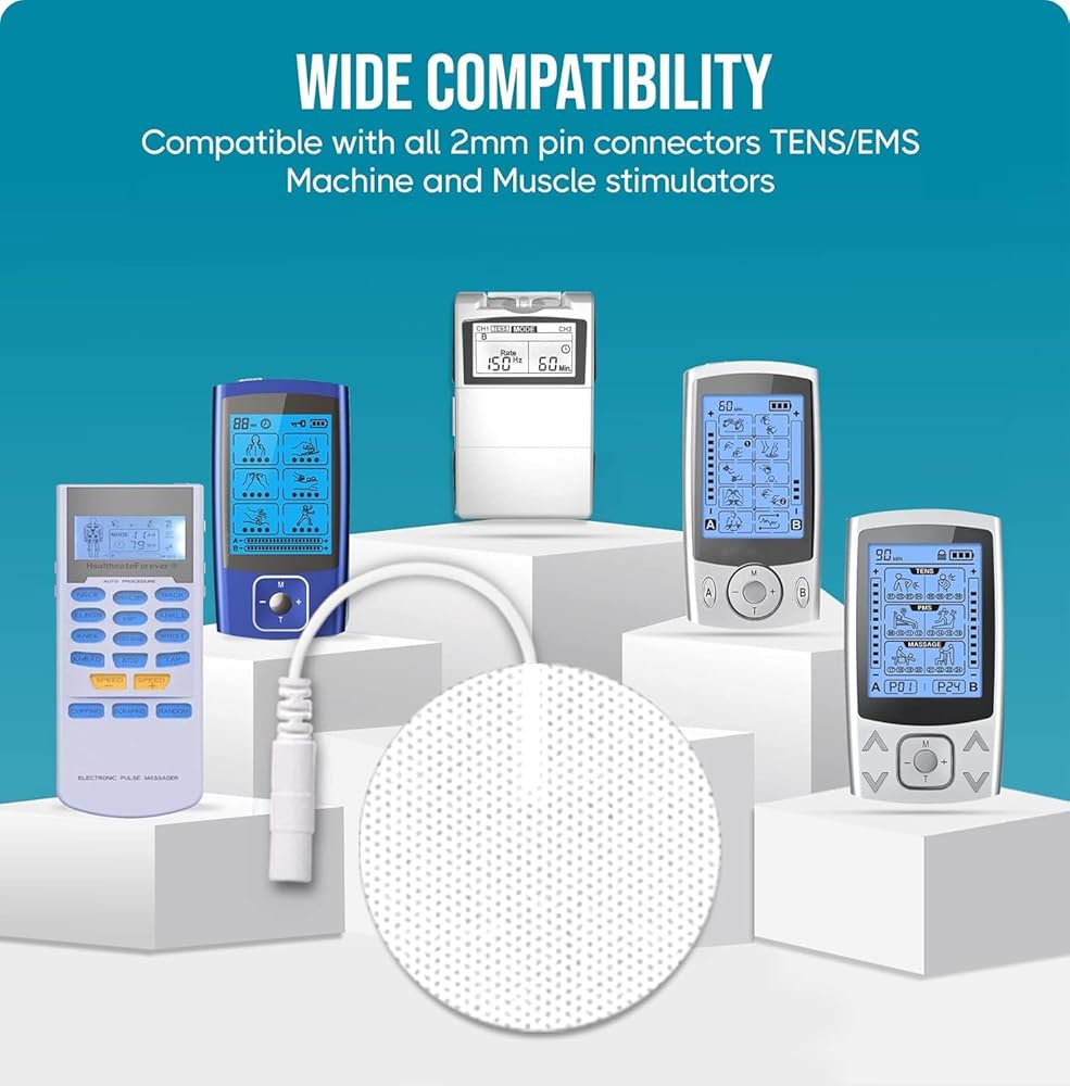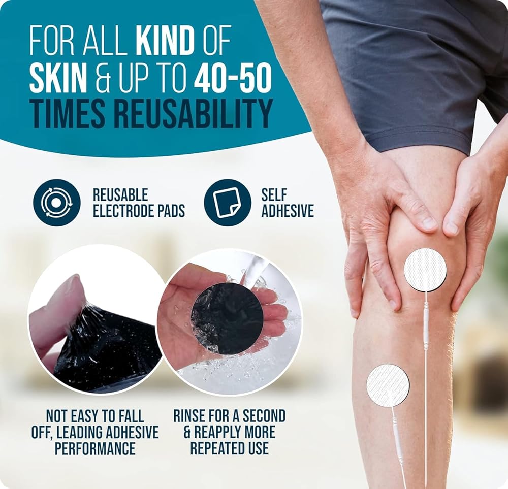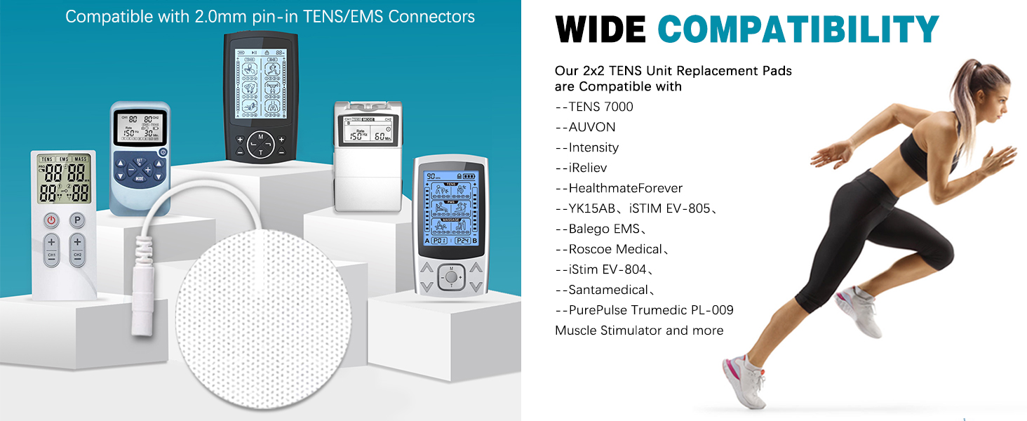 Premium Quality TENS Electrode Pads: Our Thickened 2" TENS Unit replacement pads are comfortable to touch; White non-woven backing with printed on negative with premium adhesive gel; Latex-free and non-irritating to your skin, comfortable and will evenly distribute the electrical currents; Premium carbon tens machine pads provide superior high conductivity, relax your body muscles.