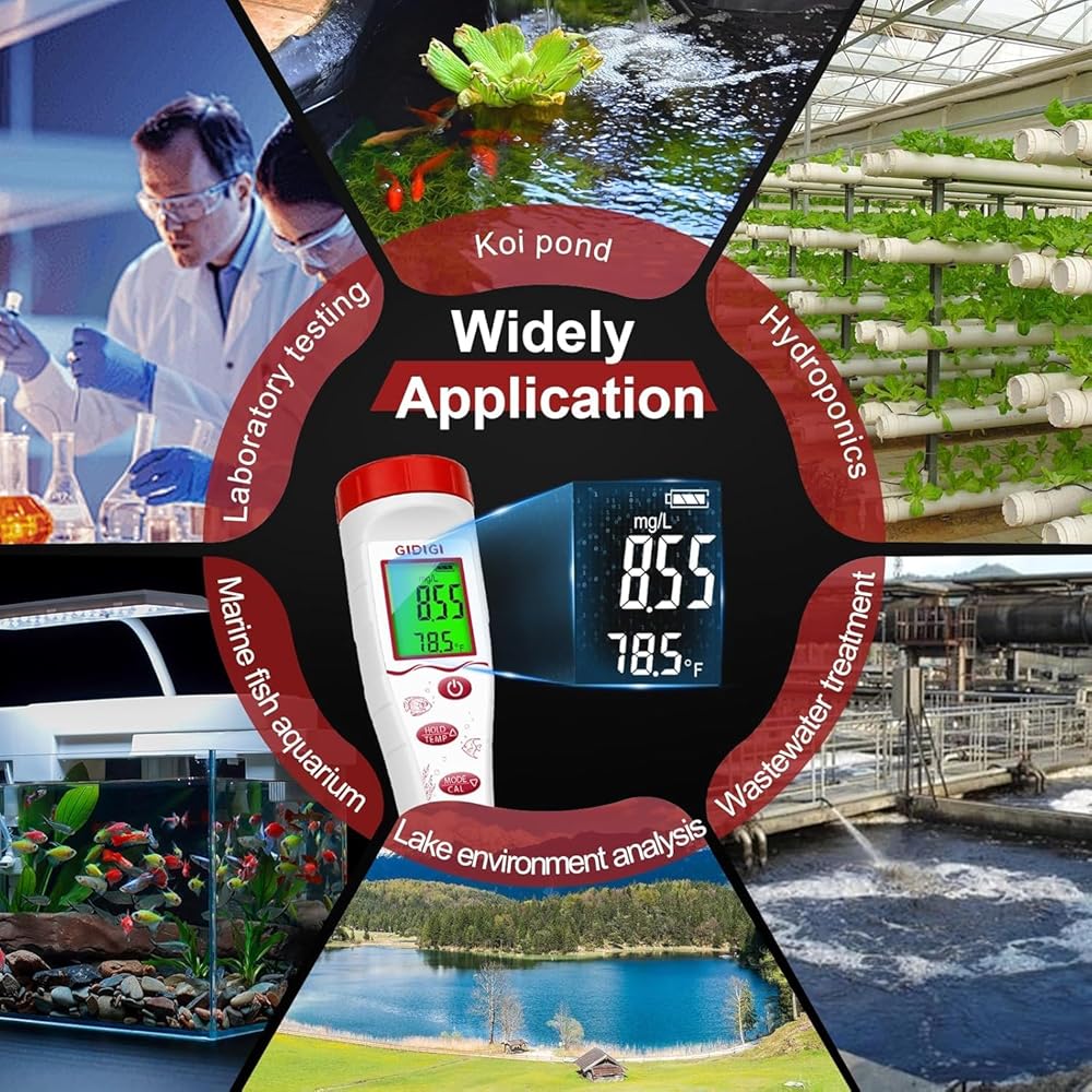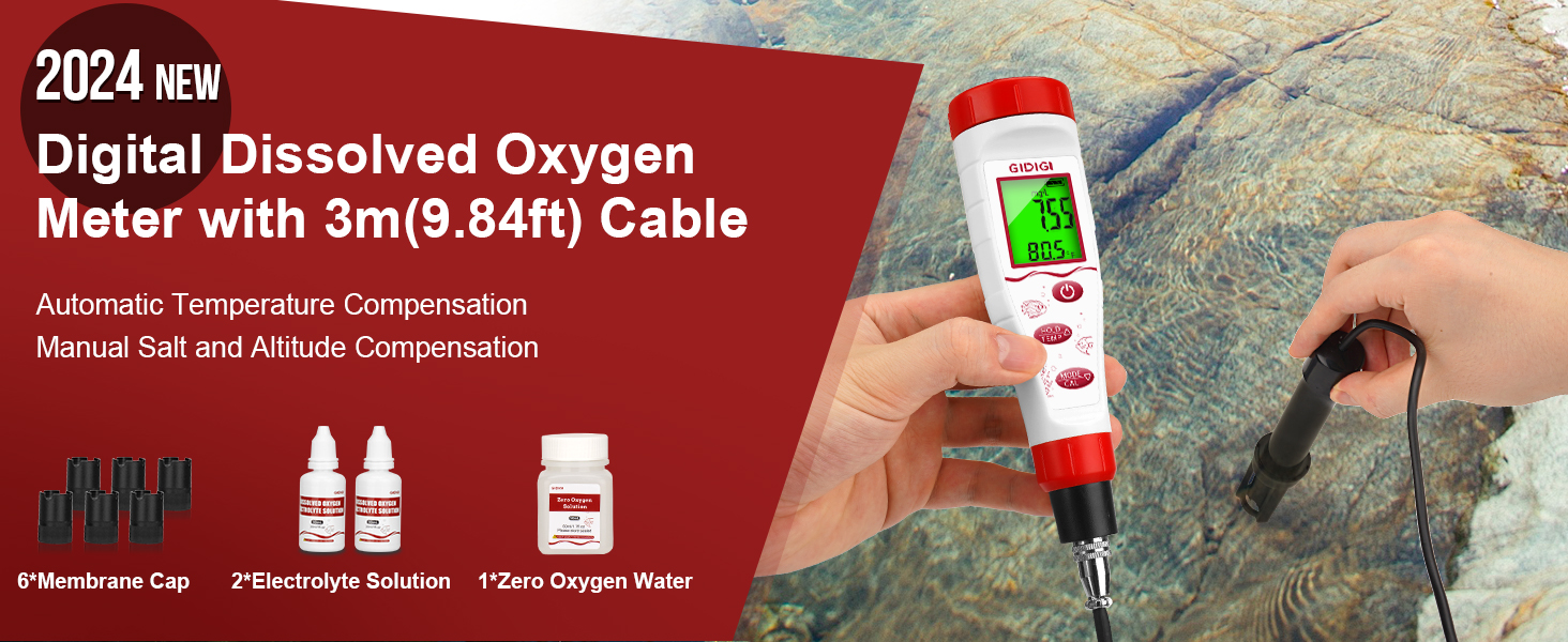 [Digital Dissolved Oxygen Meter Kit with 3m Electrode Cable]: GIDIGI dissolved oxygen tester with a 3m electrode cable. With this dissolved oxygen test kit, you can test the oxygen content in deeper water and avoid the problem that the electrode cannot touch the water due to distance. It is very convenient to carry and is very suitable for outdoor water quality measurement and environmental monitoring (lakes, rivers, large ponds and aquaculture and other aquatic systems).