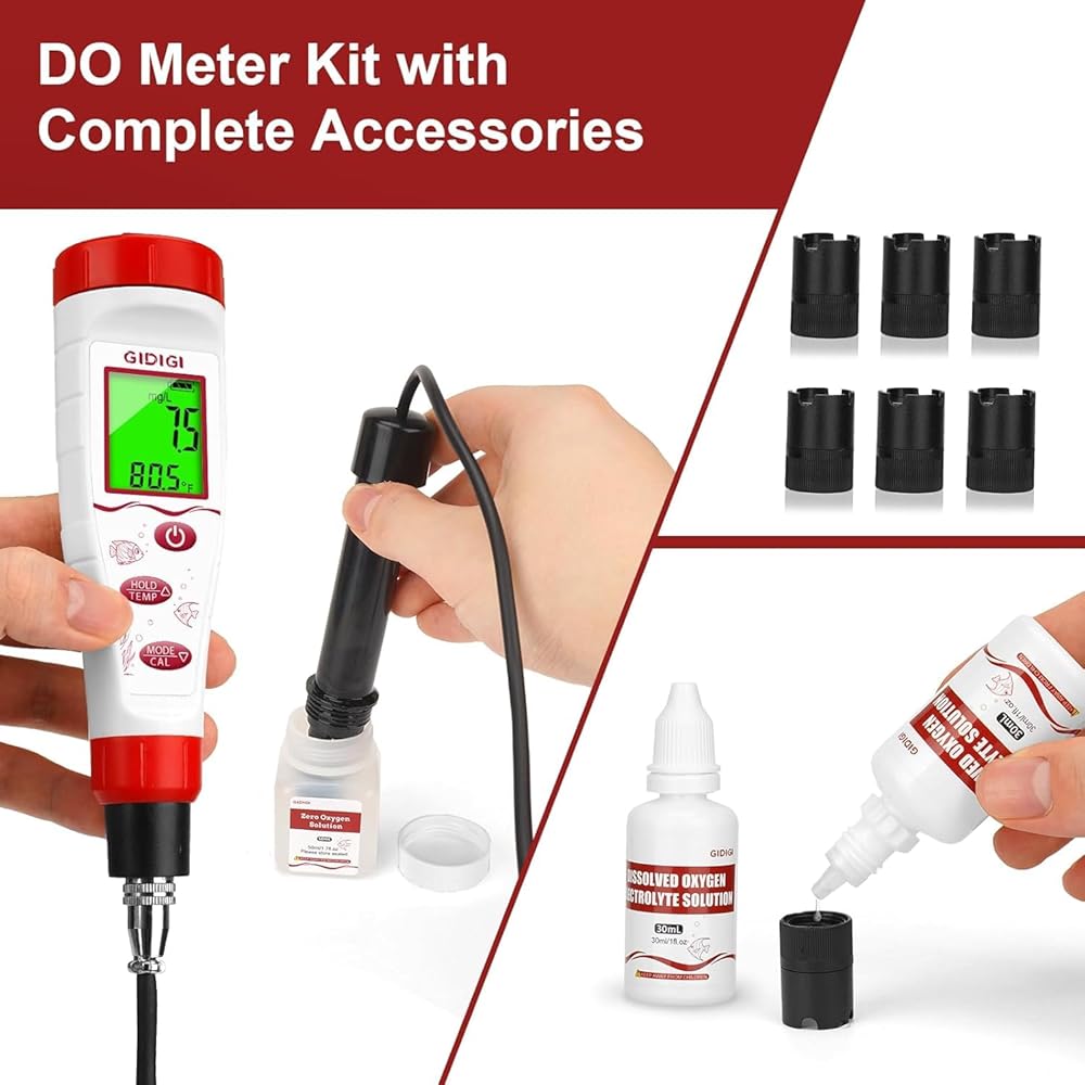 [Easy to Use and Calibrate]: GIDIGI dissolved oxygen tester comes with detailed instructions and complete accessories (replaceable membrane cap, electrolyte and zero oxygen water). No need to buy calibration solution, easily calibrate the tester. Simple operation, just put the tester electrode into the test solution to quickly obtain accurate oxygen test value. And you can easily get membrane cap and calibration solution by browsing GIDIGI store.