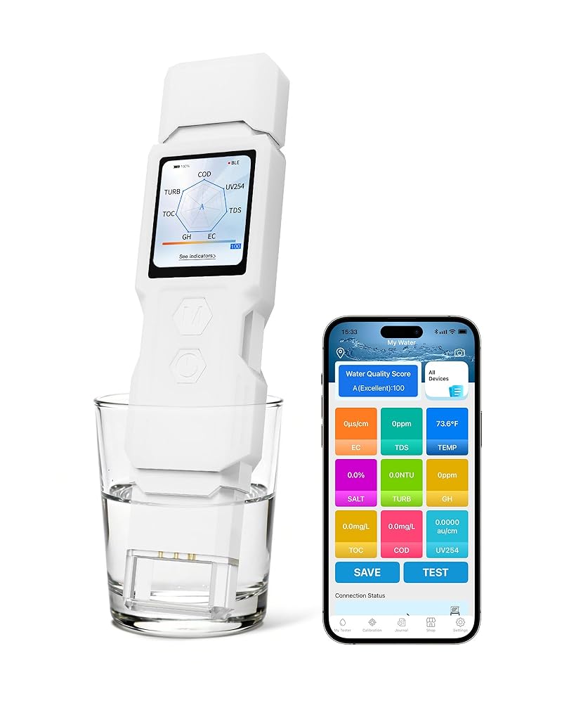 9-in-1 Smart Water Tester with APP Monitoring, Digital Water Test Kit for Turbidity, TDS, EC, Temp, Salt, GH, TOC, COD & UV275, Professional Water Tester for Drinking Water, Well, Tap & Outdoor.