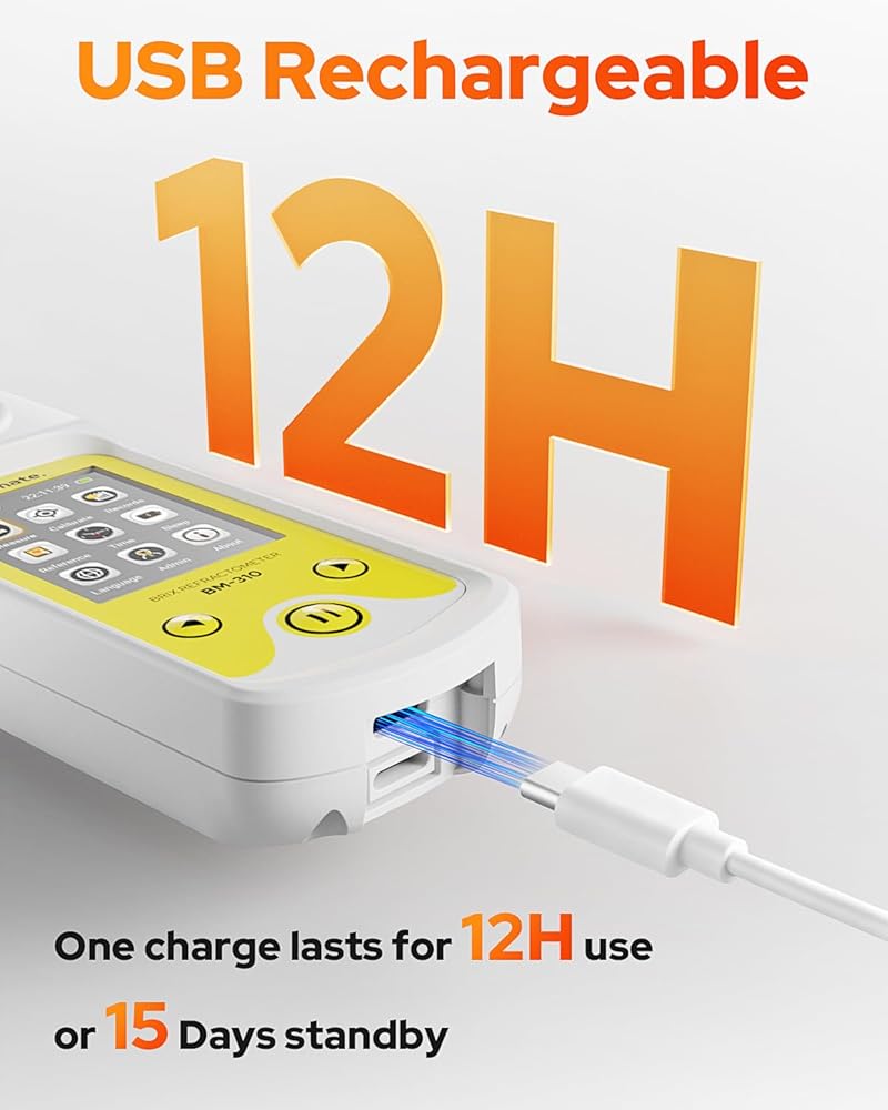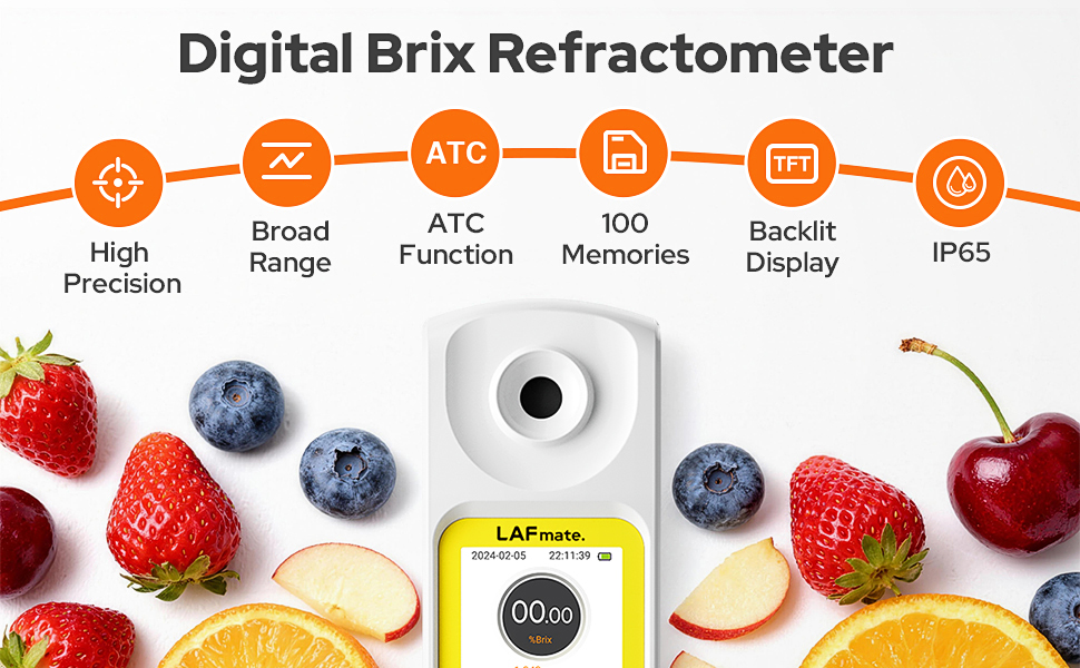 TFT Display & 100 Records The high-resolution TFT screen with backlight guarantees clear visibility in any lighting condition. The intuitive menu supports unit switching, sugar charts, multiple languages, and storage for up to 100 readings. Perfect for lab equipment, home brewing kit applications, and professional refractometer sugar testing
