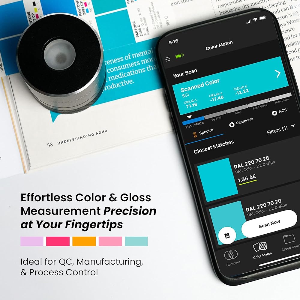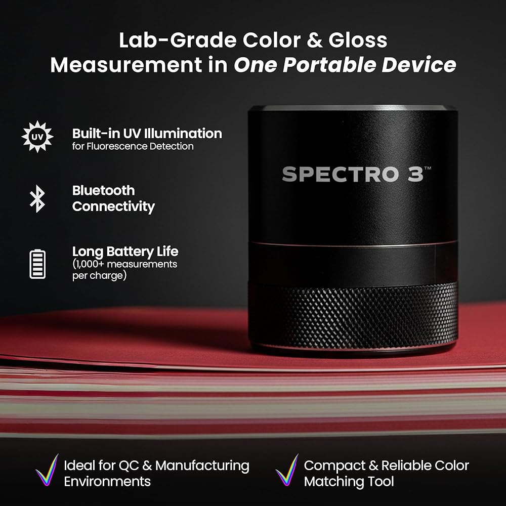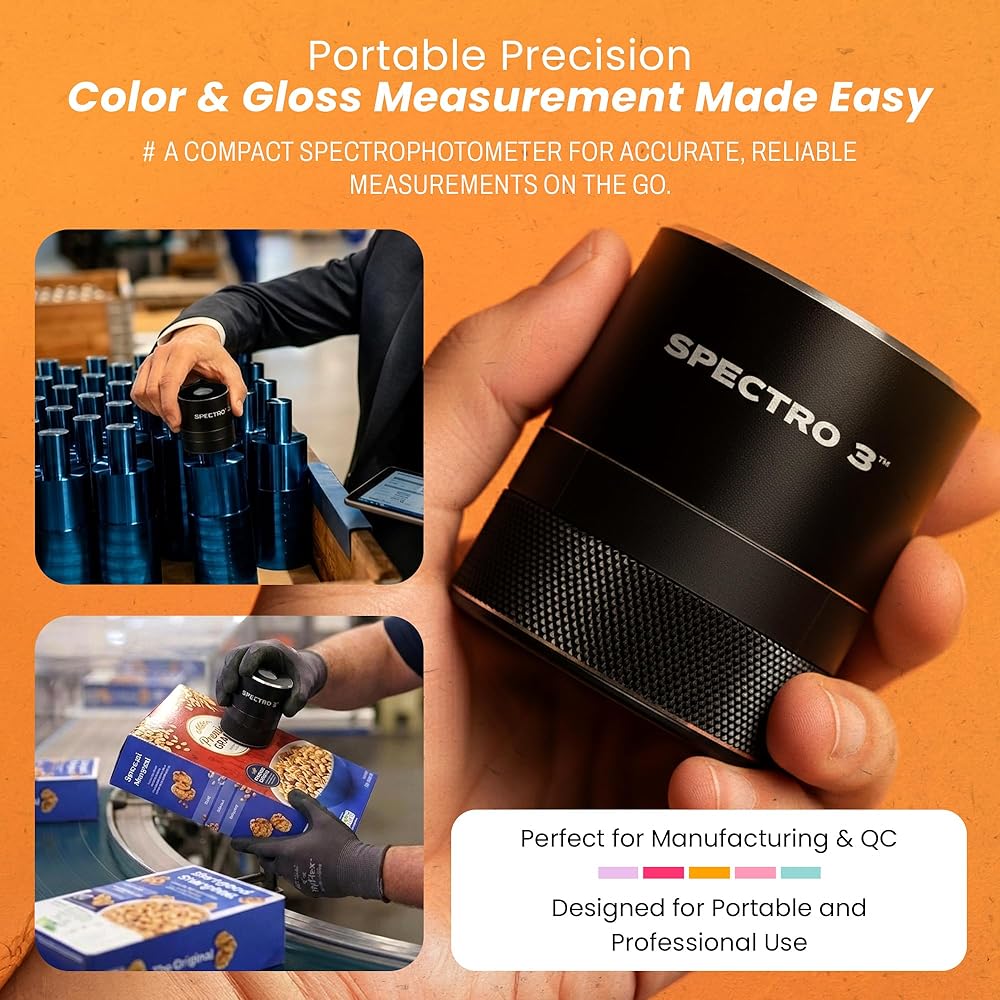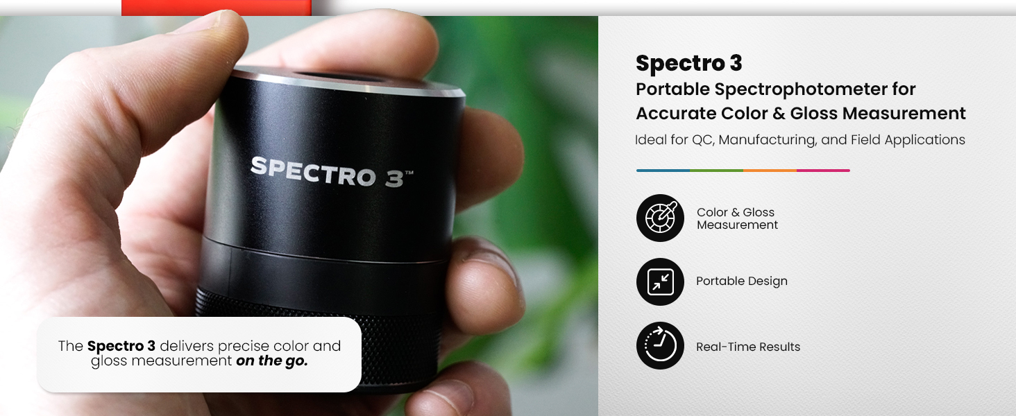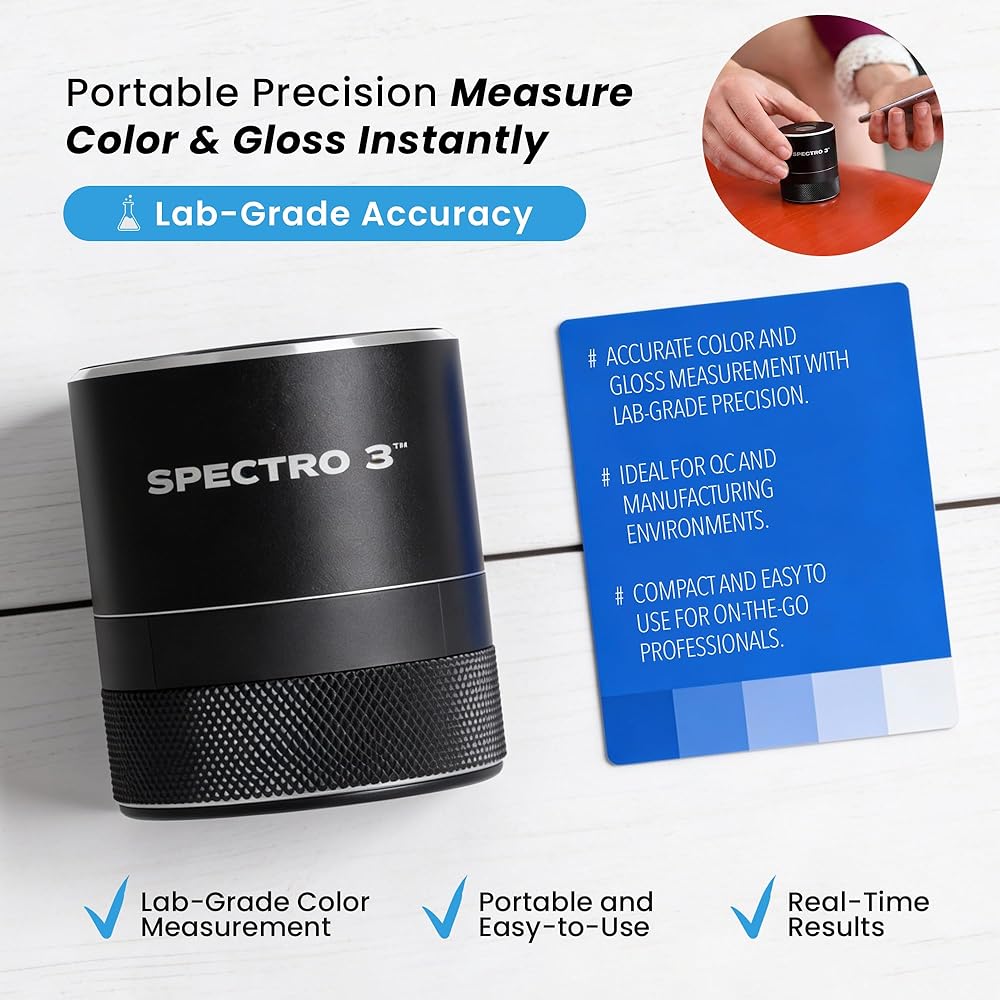 LAB-GRADE ACCURACY & PORTABILITY: Achieve precise color and gloss measurements aligned with lab spectrophotometers in a compact portable spectrophotometer. Ideal for manufacturing, QC, and field professionals needing reliable color matching tools.