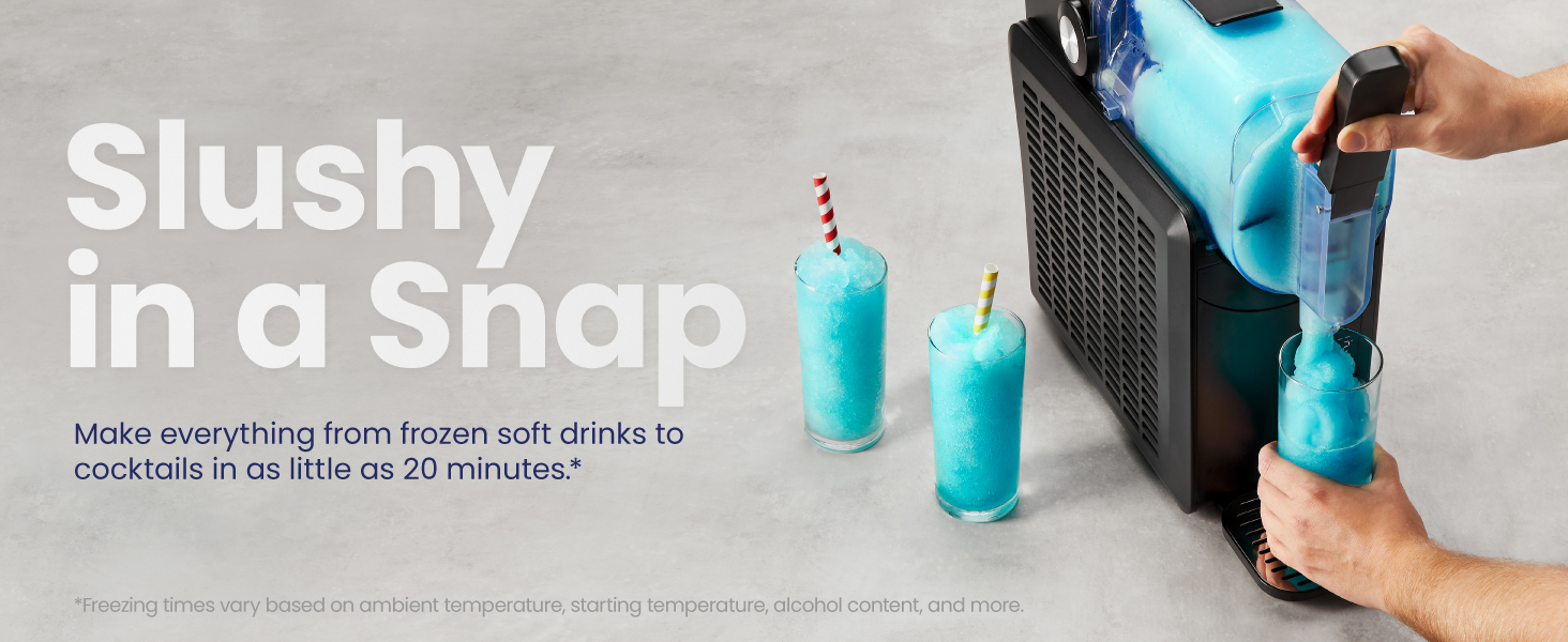 QUICK FREEZING: This slushie maker works fast to make sure that you can enjoy a cold, refreshing drink as soon as possible. Start sipping in as little as 20 minutes after starting the machine! Drinks must contain sugar to freeze properly, and freezing times may vary based on temperatures, drink contents, and more.