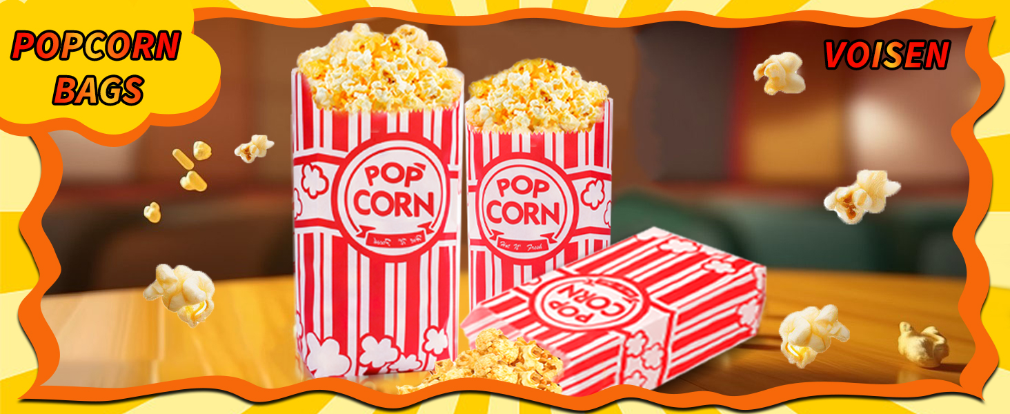 These popcorn bags for popcorn machines are crafted from food-grade paper material, ensuring non-toxicity,safety , and a lightweight design. The addition of a grease-resistant.
