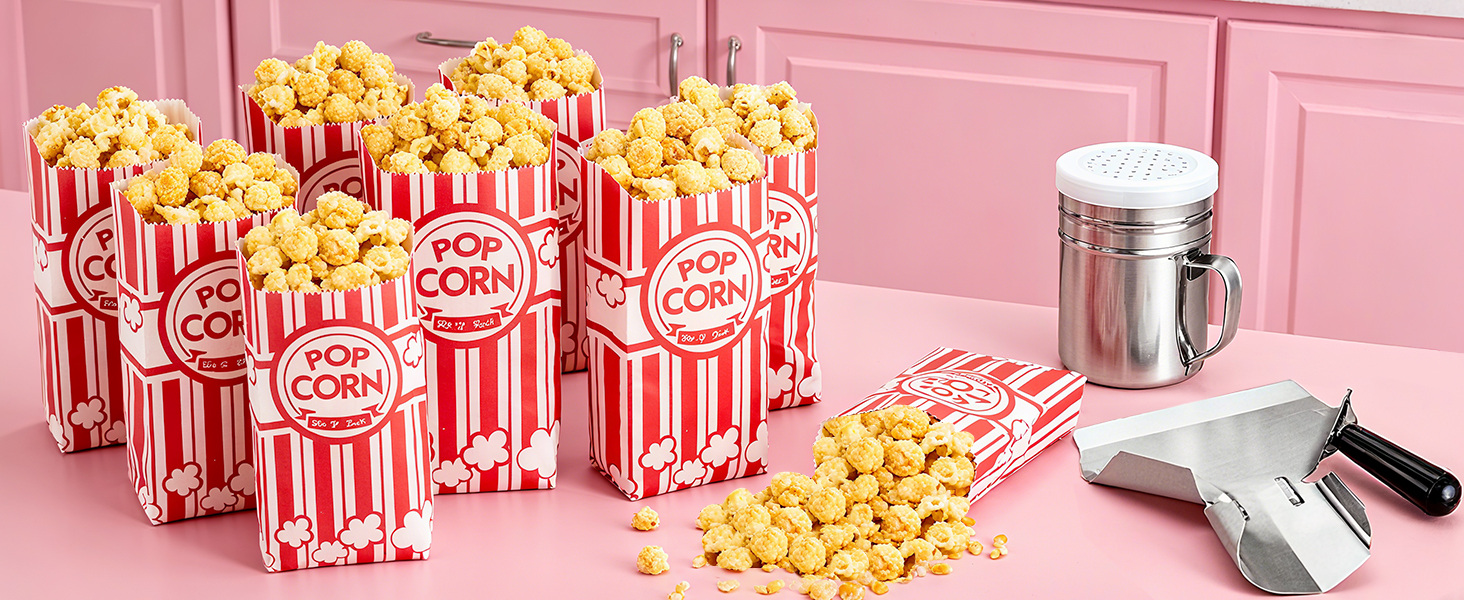 Wide usage: our popcorn bags are individual servings, which suitable for any popcorn machine, occasions and party, such as carnival, movies, cinema, amusement park, home, snack store and so on.