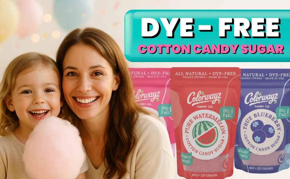 Family-Owned, Better-for-Families Brand – At Colorwayz, we focus on trusted quality and transparency, making cotton candy floss sugar that's better for families. Our mission: create candy that's joyful, wholesome, and free from unnecessary additives or synthetic dyes.