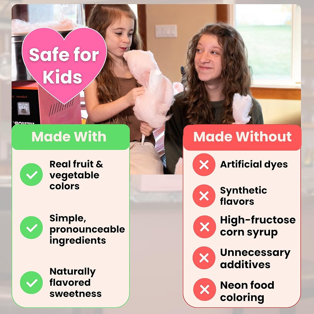 Works with Any Cotton Candy Machine – Designed as floss sugar for cotton candy maker setups in both home and commercial environments. Use this sugar for cotton candy machine bowls of all sizes—just pour, spin, and enjoy fluffy cotton candy every time.