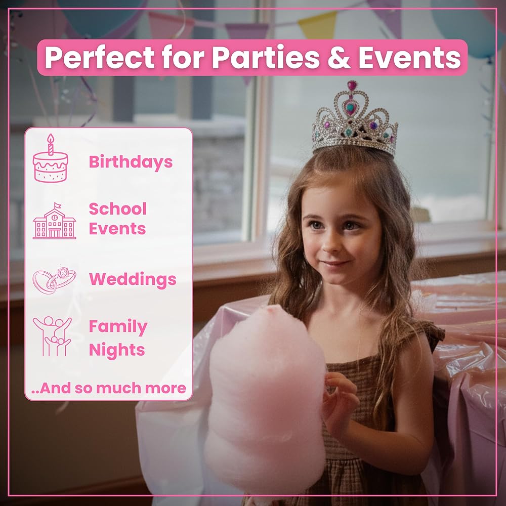 Perfect for Parties & Events – Bring joy to any occasion with cotton candy sugar and cones (sold separately) that kids and adults love. A must-have treat for birthdays, school events, weddings, family nights, and more.