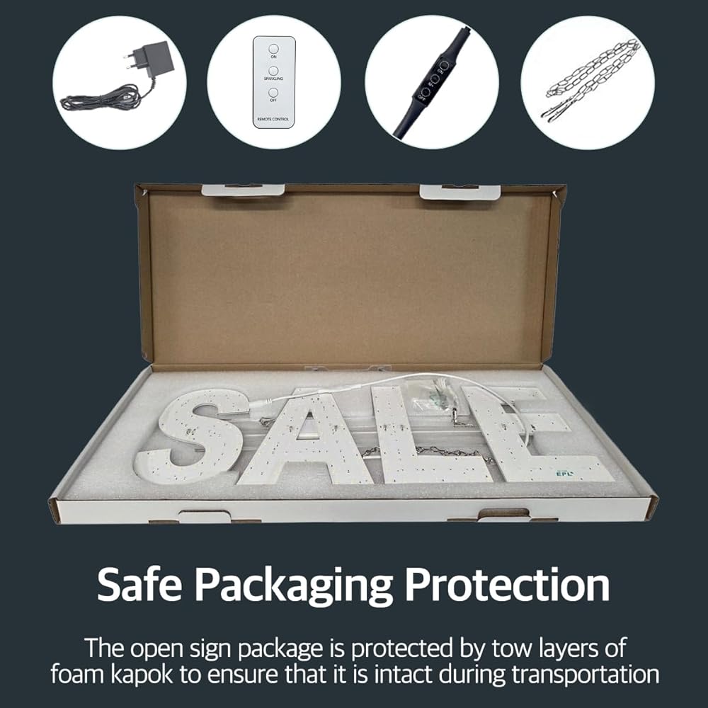 ✨ Drive More Traffic and Boost Sales with EPL Premium LED Signage! ✨ Don't let customers walk past your best deals! Our high-visibility "SALE" LED sign in vibrant Red is designed to create urgency and grab attention, making it the perfect addition to any retail storefront. 🚀 Key Features ✅ Dynamic 2G Blinking Mode: Features a specialized blinking effect that is significantly more effective at catching the eyes of shoppers than standard static signs. ✅ Superior Red Brightness: Engineered with high-intensity LEDs to ensure your "SALE" message is "Super Bright" and clearly visible even from across the street. ✅ Full Remote Control: Conveniently manage power, blinking speed, and modes from a distance with the included wireless remote. ✅ Professional Retail Aesthetic: The classic Red LED light offers a high-impact look that works perfectly for any clearance, holiday, or promotional event. ✅ Durable & Energy Efficient: Built with advanced LED technology for long-lasting 24/7 operation with minimal power consumption. 🚀 Specifications ✅ Text: SALE (Vibrant Red) ✅ Technology: 2G (Blinking Mode) ✅ Size: 8" x 22" (Inches) ✅ Inclusions: LED Sign, Remote Control, Power Adapter Maximize your promotional impact today with the professional quality and brightness of EPL!