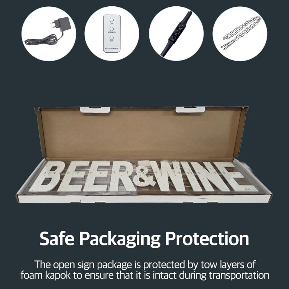 ✨ Make Your Business Shine with EPL Premium 3G LED Signage! ✨ Attract more customers to your bar, pub, or liquor store with our high-visibility "BEER&WINE" LED sign. Featuring advanced 3G technology, this White and Red lighting solution provides a sophisticated and dynamic look that stands out 24/7. 🚀 Key Features ✅ Dynamic 3G Sparkling Effect: Our specialized sparkling animation creates a high-end visual appeal that effectively catches the eye of every passerby more than static signs. ✅ Superior Brightness: Engineered with premium LEDs to be "Super Bright," ensuring your message is crisp and clear even from a long distance. ✅ Full Remote Control: Effortlessly manage the sparkling speed, brightness, and power settings from a distance with the included wireless remote. ✅ Professional Storefront Upgrade: The vibrant combination of White and Red LEDs provides a modern and inviting atmosphere for your business. ✅ Durable & Energy Efficient: High-quality LED technology ensures long-lasting performance with low power consumption for 24/7 operation. 🚀 Specifications ✅ Text: BEER&WINE (White & Red) ✅ Technology: 3G (Sparkling Mode) ✅ Size: 7" x 32" (Inches) ✅ Inclusions: LED Sign, Remote Control, Power Adapter Elevate your business presence today with the professional quality and unmatched brightness of EPL!