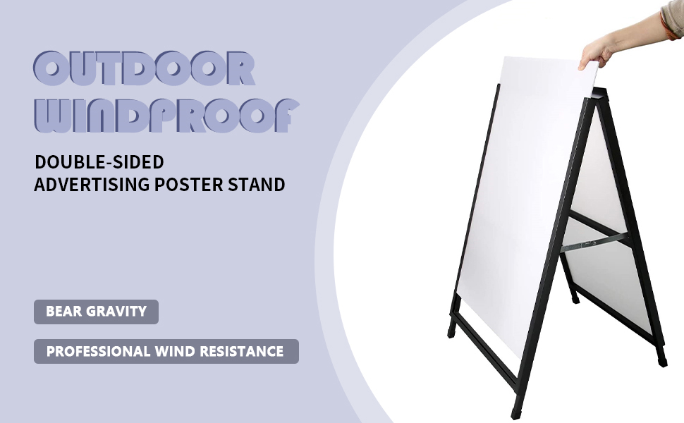 【Used for 24 x 36 Inches Board & Poster】The A-Frame sandwich board sidewalk sign displays two 24"W x 36"H sign boards and the thickest poster that can be placed is 8mm . The bigger size maximize advertising from multiple directions to attract more attention.