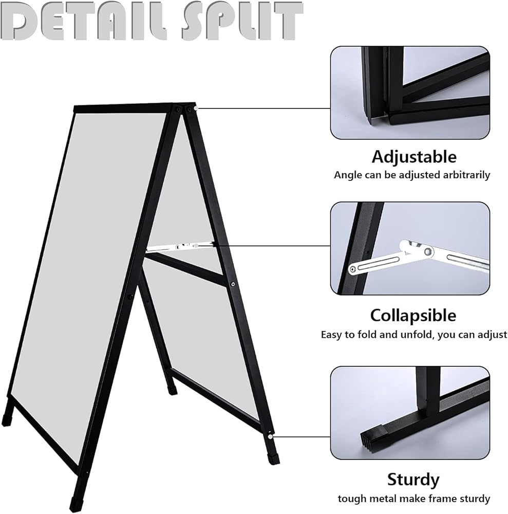 【Portable Structure】The Sidewalk Sign is foldable design, easy to carry and storage, can easily fit into your car boot. It does not break the ground structure, and is easy to Change posters, perfect for advertisement display.