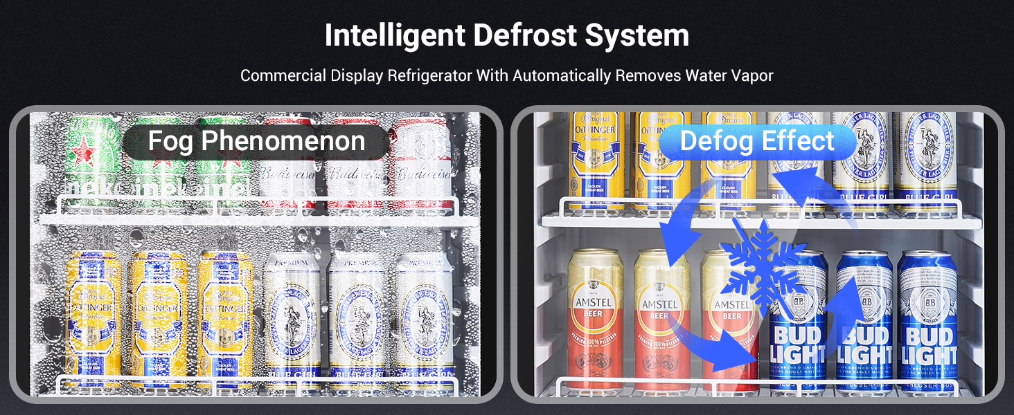 【Efficiently Insulated Display Refrigerator】 BODEGACOOLER commercial beverage refrigerator is equipped with double-thickness glass door, using materials with UV and heat insulation function, effectively blocking UV and heat, greatly saving energy. Meanwhile, the internal thermostat system complements the powerful cooling circulation system, solving the trouble of water droplets generated by condensation inside the commercial refrigerators glass door refrigerator.