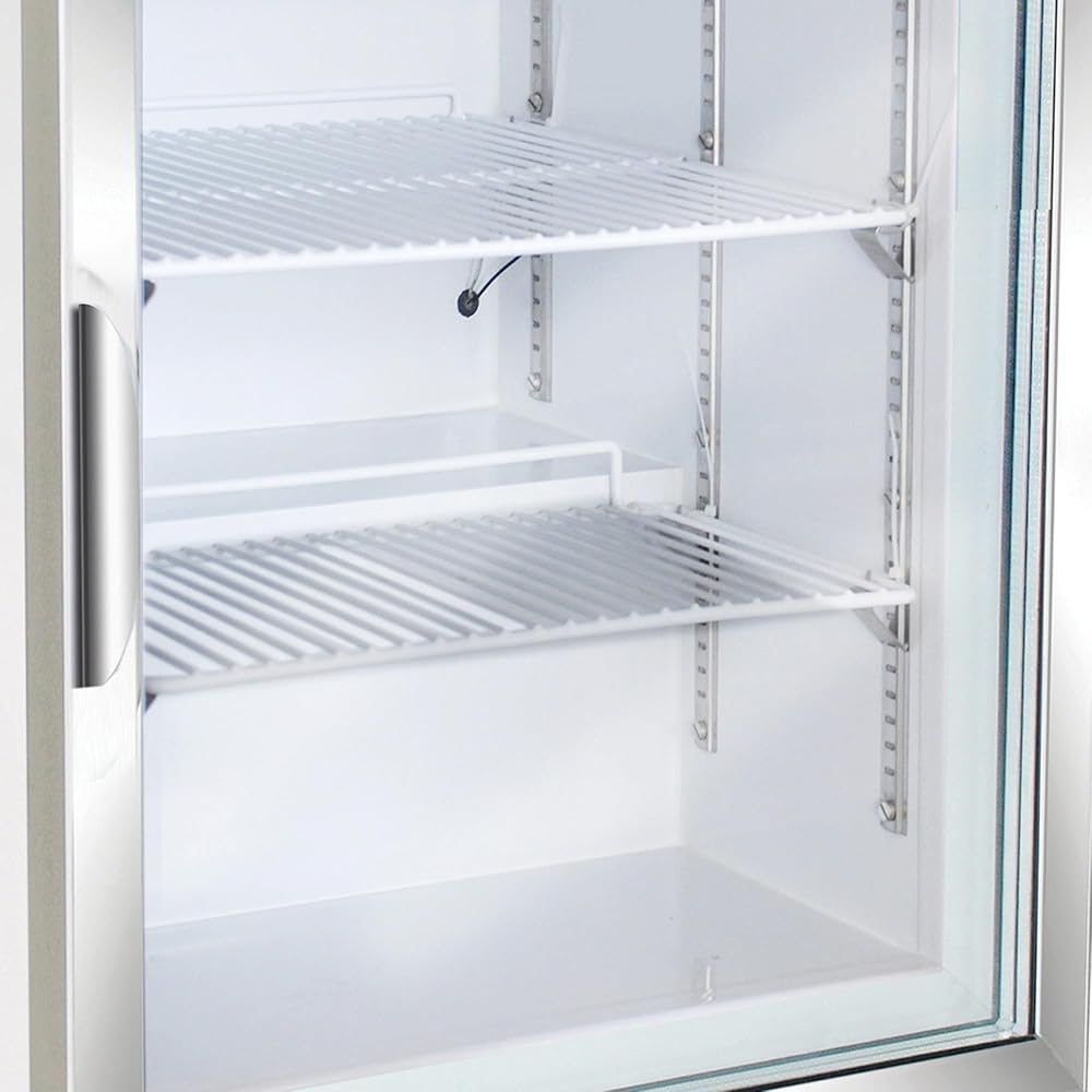 Compact and versatile, the Maxx Cold X-Series Glass Door Countertop Merchandiser Freezer is ideal for displaying and storing frozen food items in retail settings such as convenience stores, supermarkets, delis and cafes. Perfect for establishments with limited space, this commercial countertop display freezer features a triple-pane glass door that provides excellent visibility of your frozen food items, such as desserts, frozen meals, ice cream and more. Constructed of white painted steel exterior and ABS interior, the unit has a storage capacity of 3.5 cubic feet (102 L). It includes three adjustable heavy-duty PE-coated wire shelves for organizing and displaying frozen goods. Energy-efficient interior LED lighting illuminates your products, letting customers easily view and select items. Foamed urethane insulation improves temperature regulation, maintaining optimal frozen temperatures within the unit's range of 0°F to 10°F (-18°C to -12°C). Digital controls with LED temperature display let you easily monitor the temperature. Four adjustable leveling feet keep the unit stable, and the lock and key set keep your contents safe after hours. The unit features a bottom-mounted compressor, and it is equipped with an integrated condensate evaporator; therefore, no drain line connection is needed. With its compact design, visibility, temperature control and merchandising capabilities, the Maxx Cold X-Series Glass Door Countertop Merchandiser Freezer is a valuable asset for businesses looking to showcase frozen products while maximizing space. Covered by the Maxx Cold One-Year Parts & Labor + Five-Year Compressor (Part Only) Warranty.